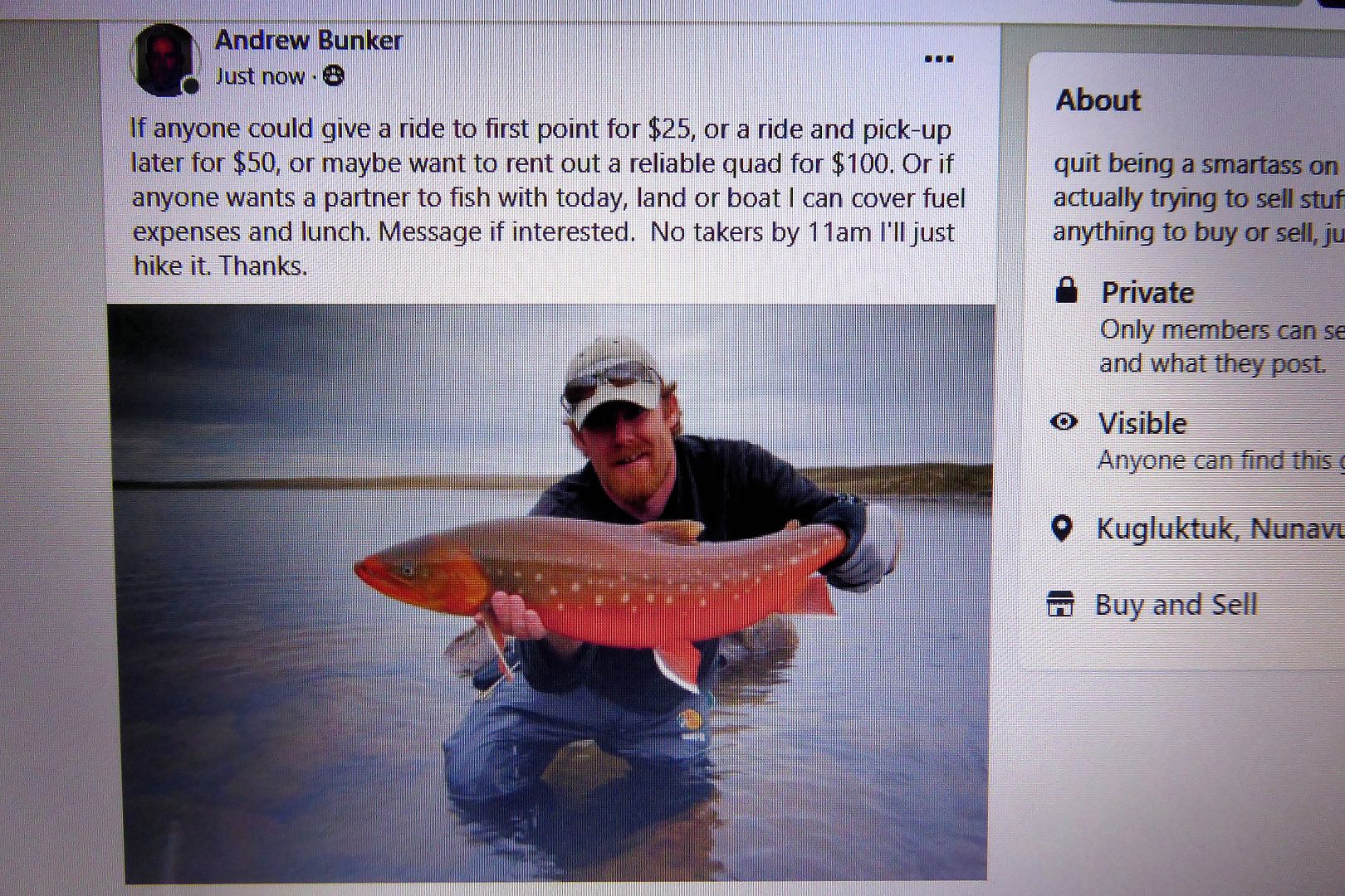 Needing a fishing license I hopped down to the Wildlife Office shortly after lunch. While I had been in Grise Fiord over the winter, a fella with whom I worked has a nephew in Kug and his job is one of the Wildlife Officers. So I poked into meet Russel and his partner on the job, Allan. Having the chance to talk enthusiastically about fishing and hunting with these fellas I was certainly able to learn a few things. Man, they’re both such easy going guys who love the outdoors I wanted us all to head out on the land that minute. Before leaving, there was an offer to borrow Russel’s ATV over the weekend if he wasn’t needing it, talk about kind.