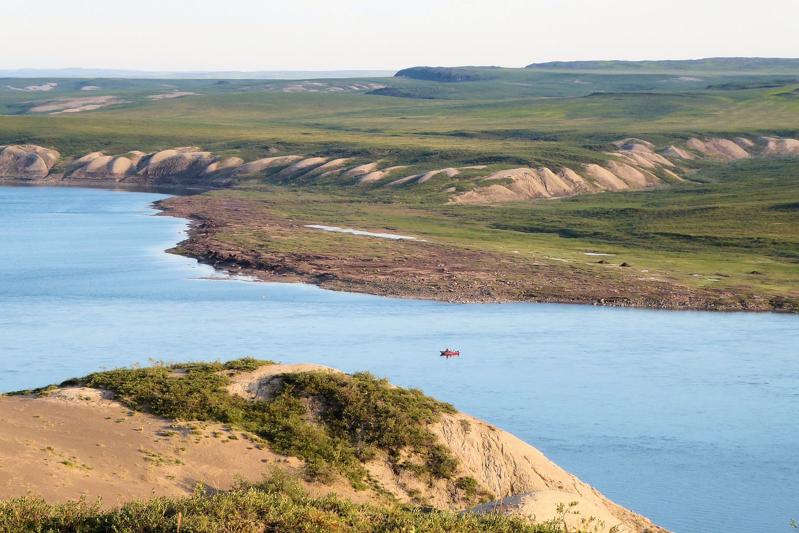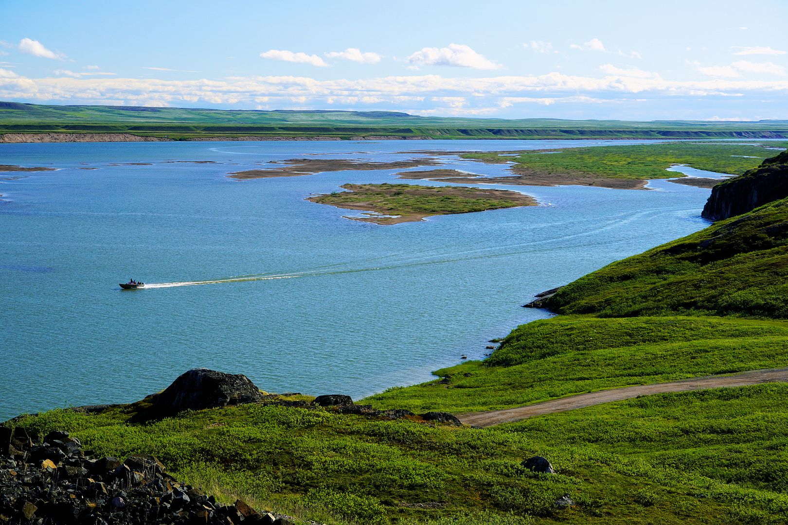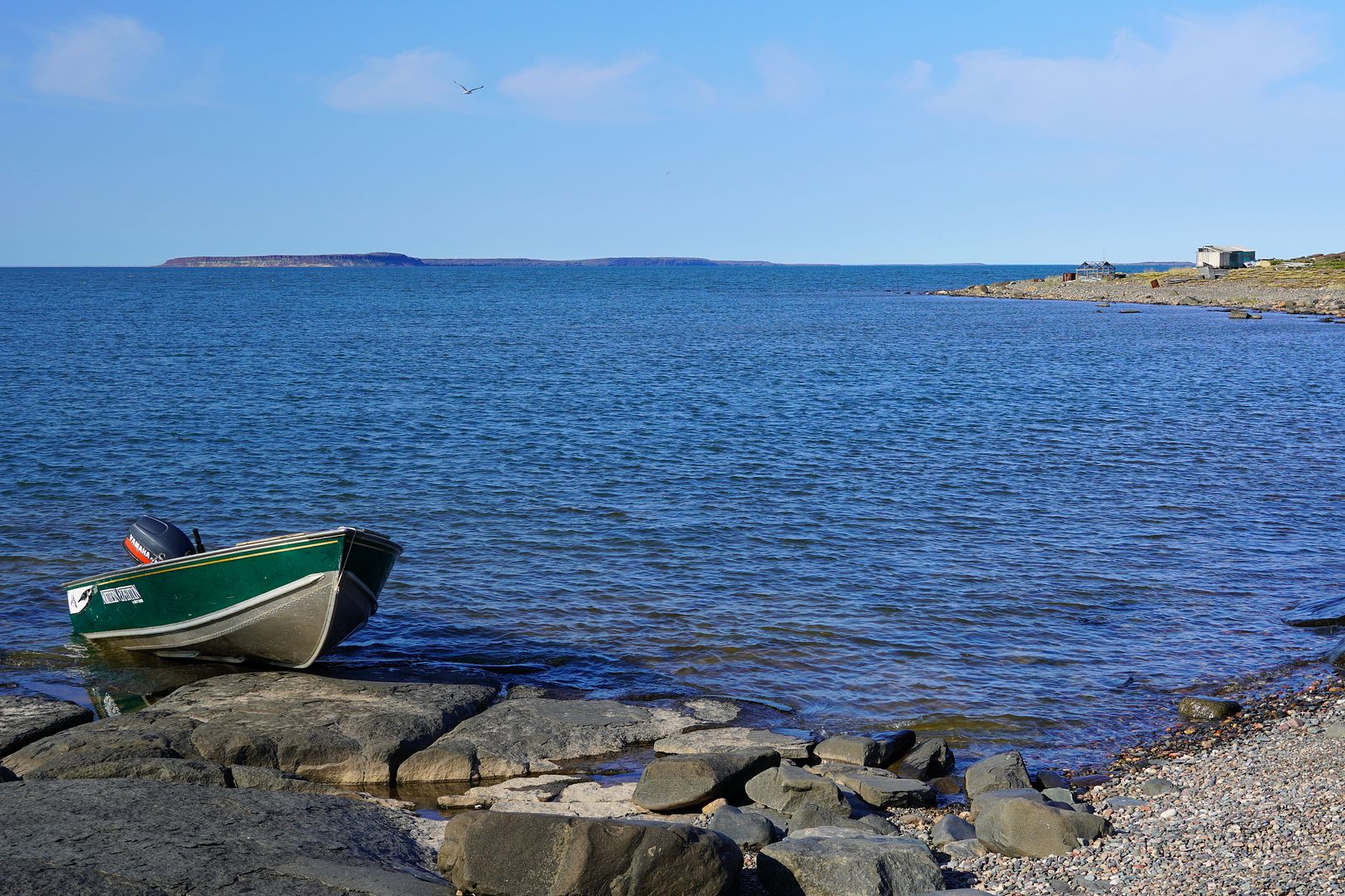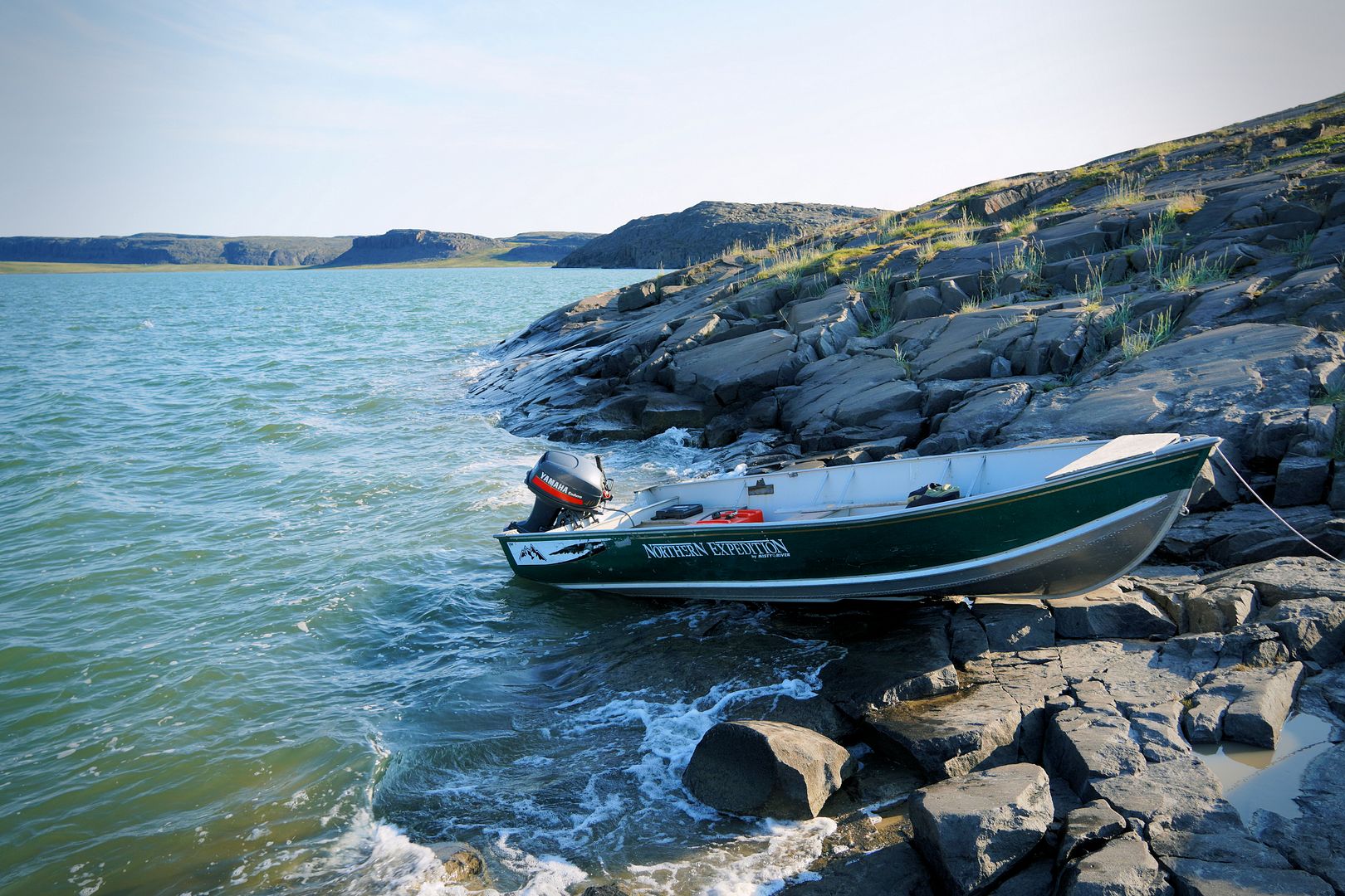 A slight chop, Bob’s young lad along and sitting beside me we leaned forward to soften some of the bum bumpins in the middle seat. The 18 foot tinny with a 40 Yammy cruised along at a great clip, probably pushing 30mph. We were going east from Kugluktuk, along the southern shores of Coronation Gulf and south of the Berens Islands. Bob was in his element out here, Captain of the day.