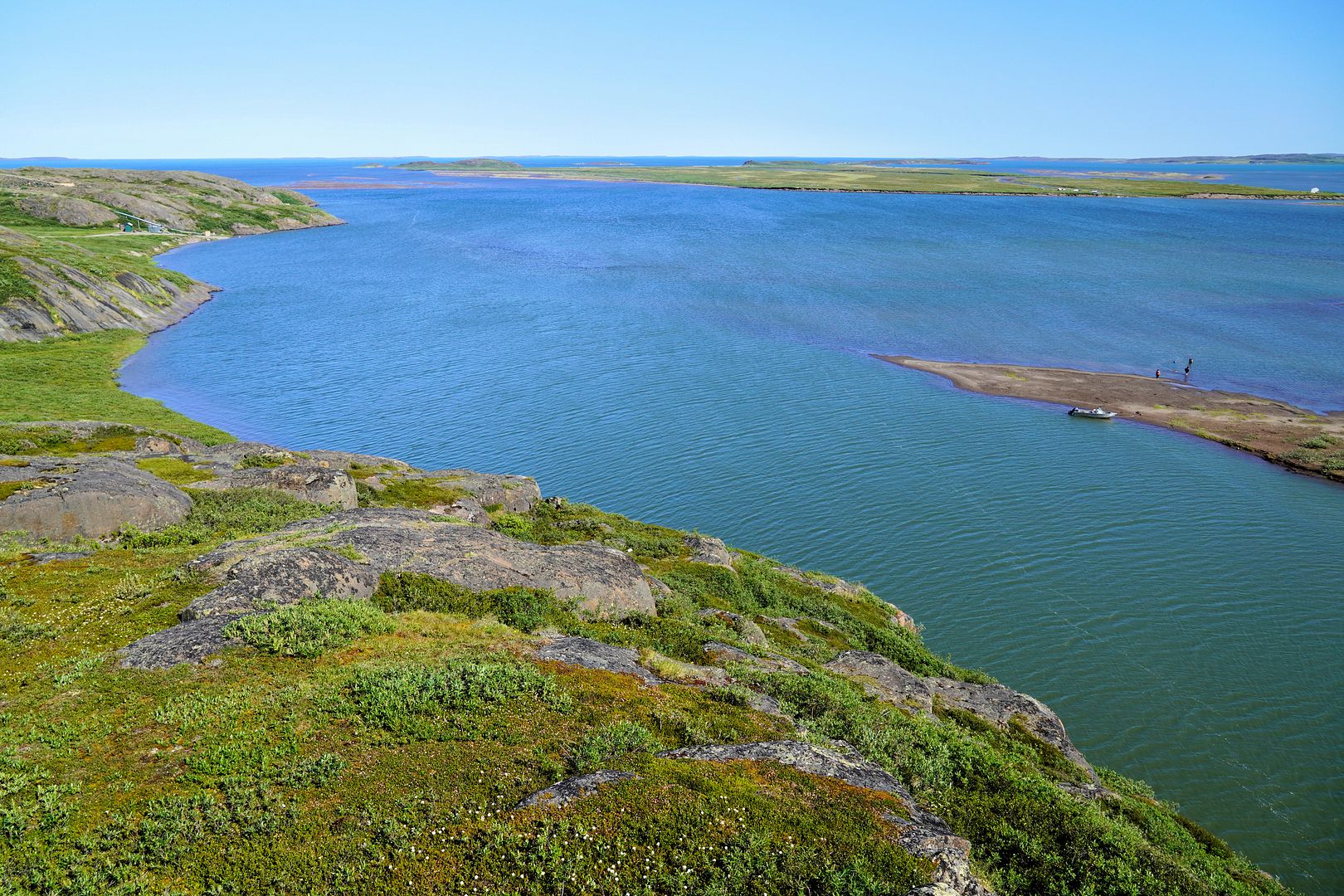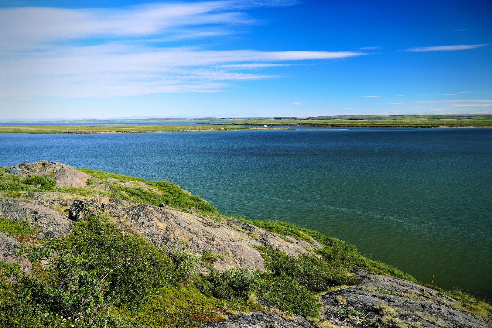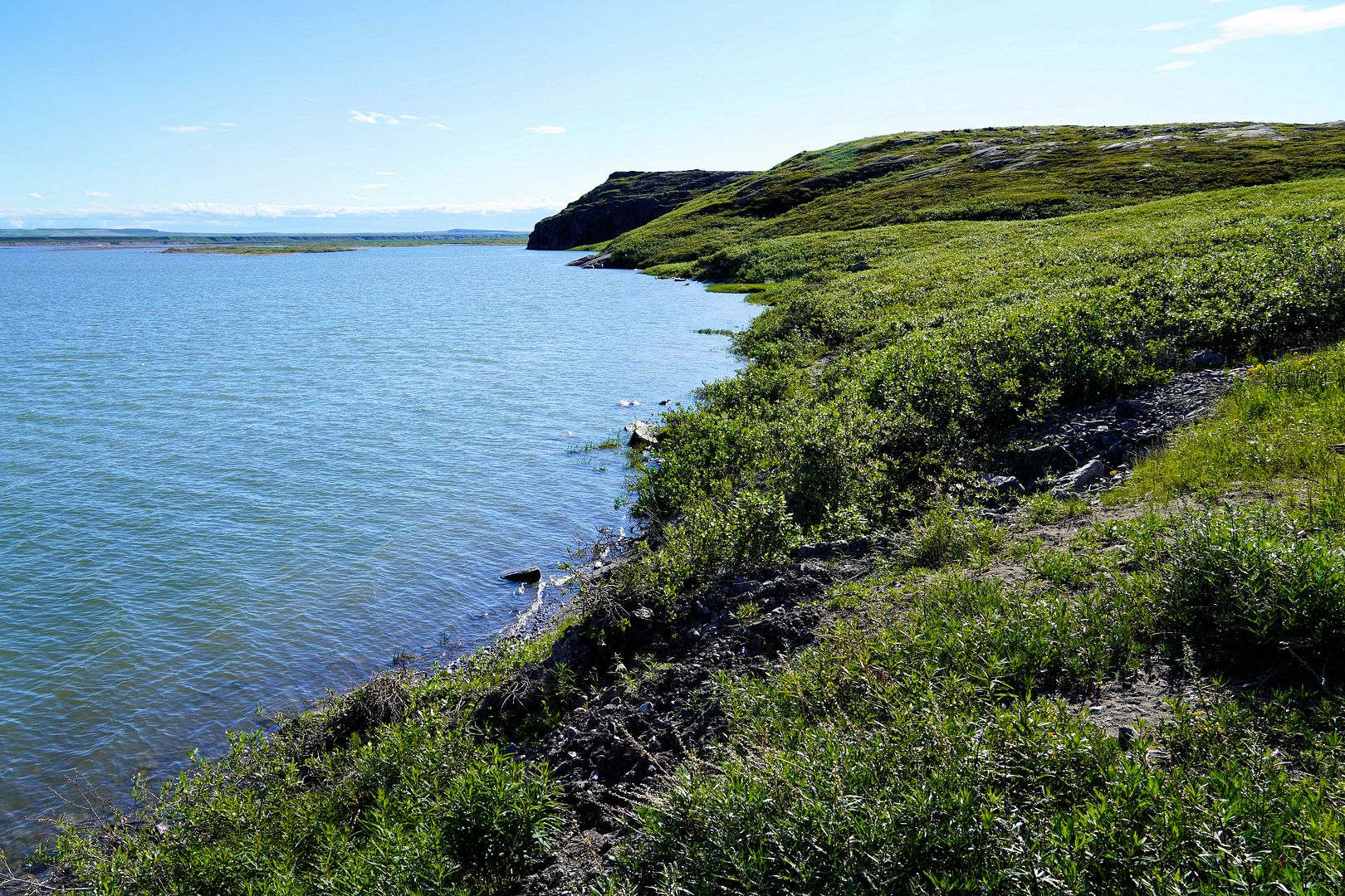 A slight chop, Bob’s young lad along and sitting beside me we leaned forward to soften some of the bum bumpins in the middle seat. The 18 foot tinny with a 40 Yammy cruised along at a great clip, probably pushing 30mph. We were going east from Kugluktuk, along the southern shores of Coronation Gulf and south of the Berens Islands. Bob was in his element out here, Captain of the day.