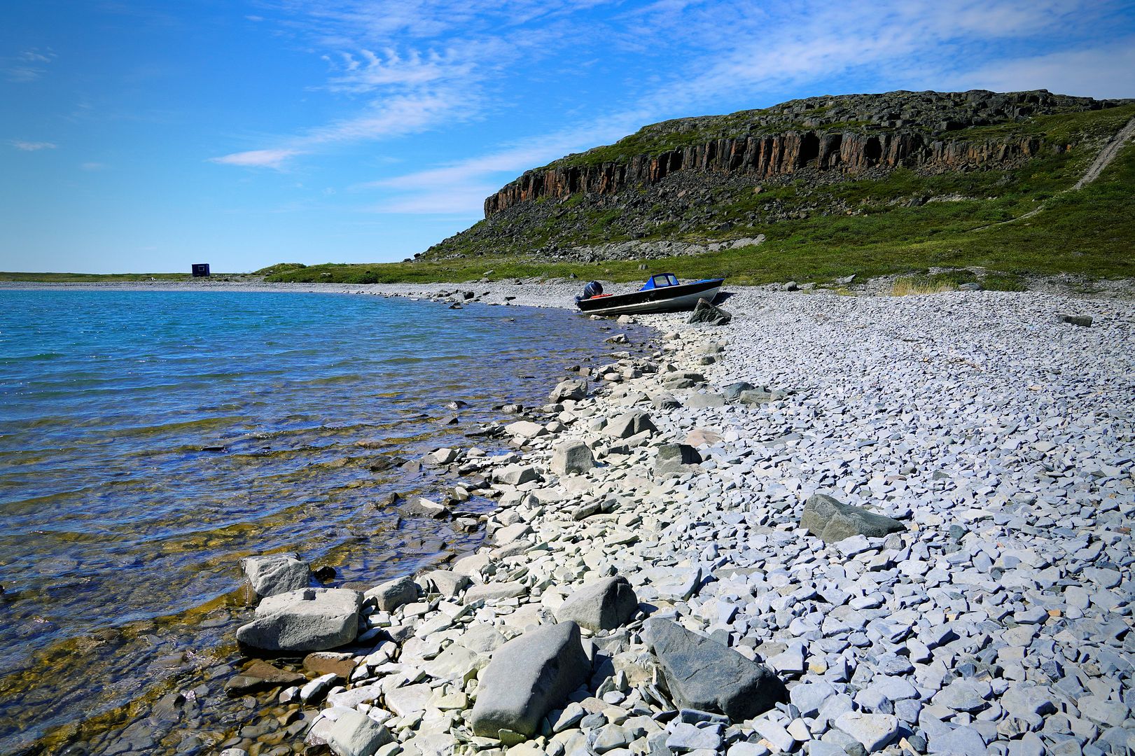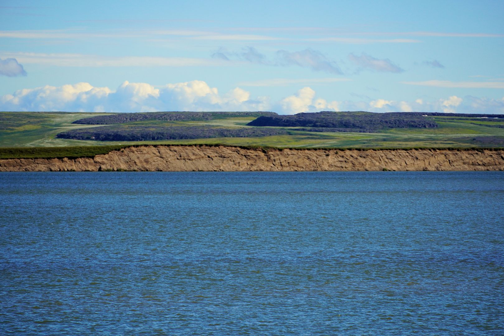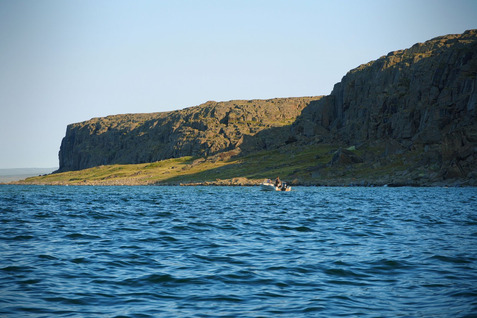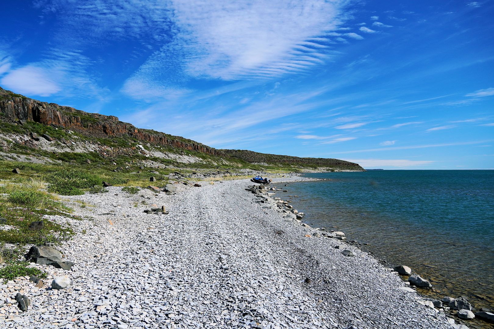 A slight chop, Bob’s young lad along and sitting beside me we leaned forward to soften some of the bum bumpins in the middle seat. The 18 foot tinny with a 40 Yammy cruised along at a great clip, probably pushing 30mph. We were going east from Kugluktuk, along the southern shores of Coronation Gulf and south of the Berens Islands. Bob was in his element out here, Captain of the day.