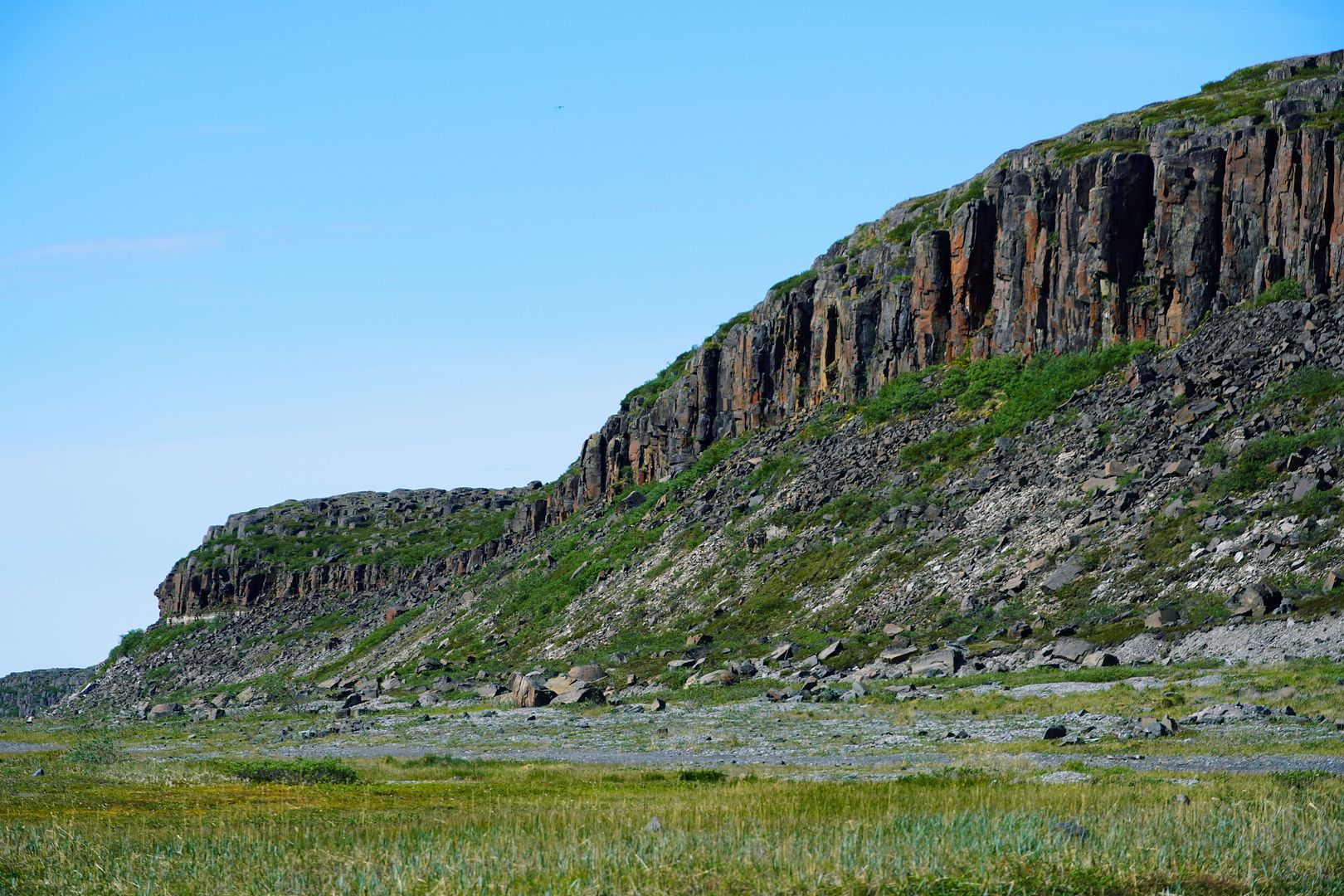 Local buzzards watchful and waiting for me to keel over and die, my God was I spent on arrival back at the car. Both feet, shins, calves and hips worn right out. Lips chapped, knuckles scabbed. The amount of intoxicating deet flowing through the bloodstream had me blowing over half delirious. Down in my trousers, some excessive ball sweat even had me chaffing some too. Just a hot, sweaty mess of pure Nunavut Nomad awesomeness…