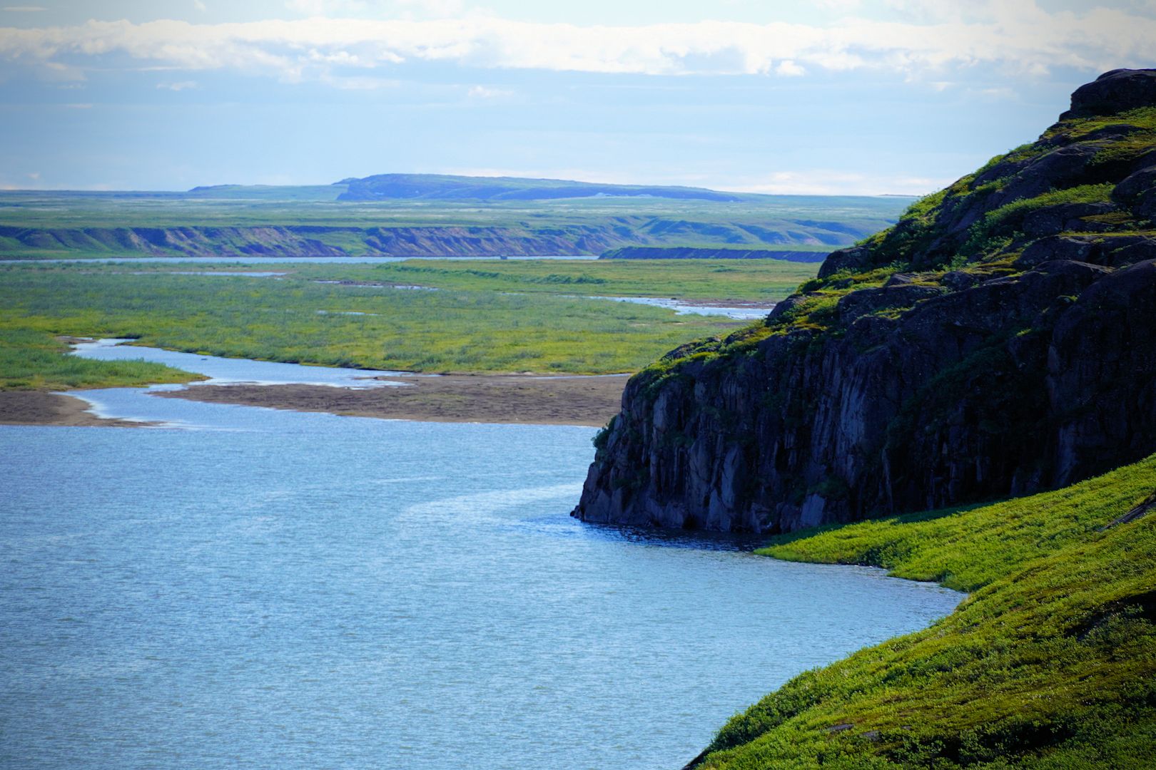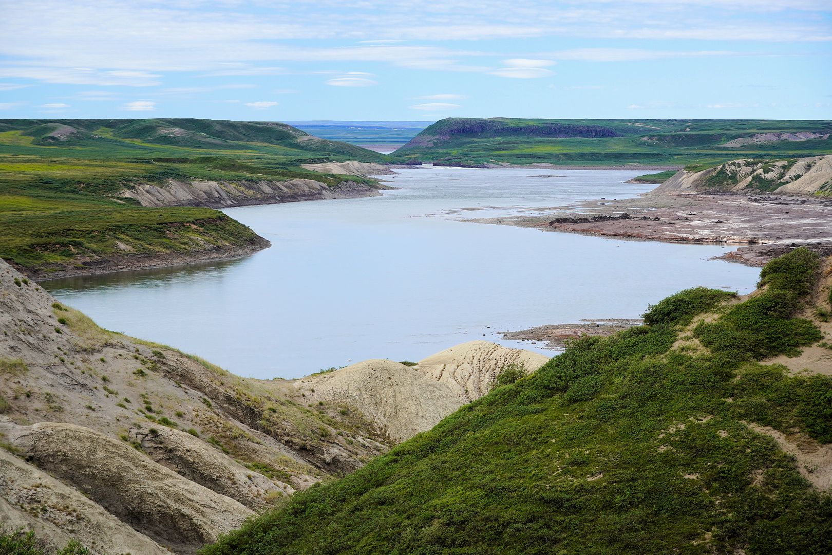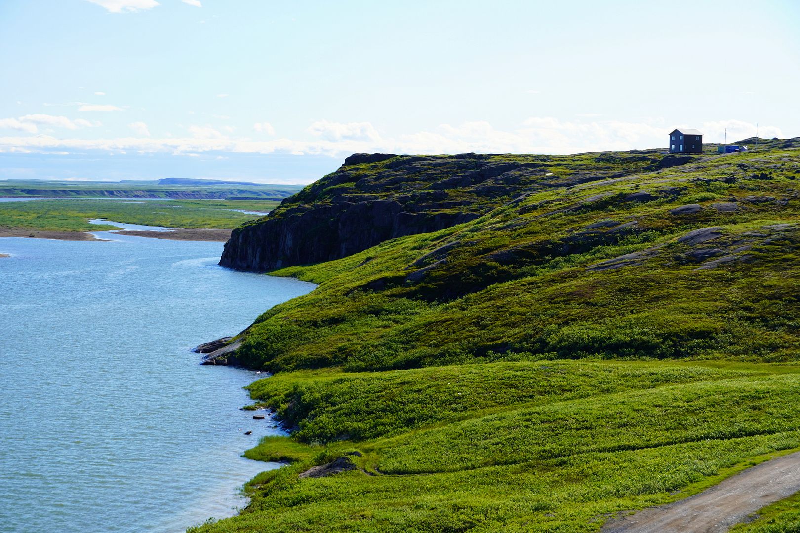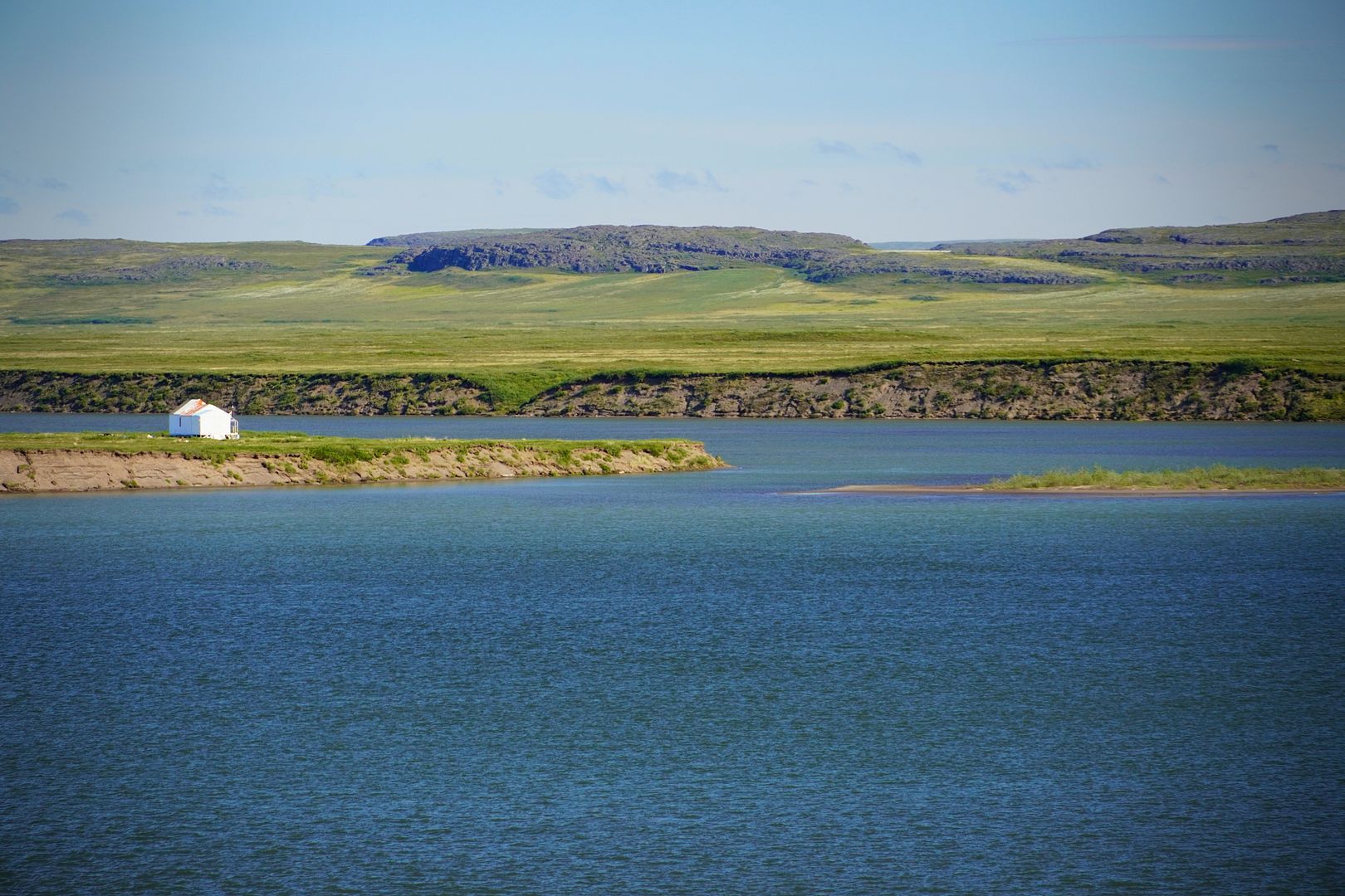 Kugluktuk is a picturesque place. Nunavut’s most western and warmest town, it’s located at the mouth of the Coppermine River where its flows in to meet Coronation Gulf at the Arctic Ocean. A wild country full of wildlife. I believe the residents here are truly fortunate to have so much more land on which to roam, more so than in most other Arctic communities, and to also have the vast variety of fish and animals available for sustenance.