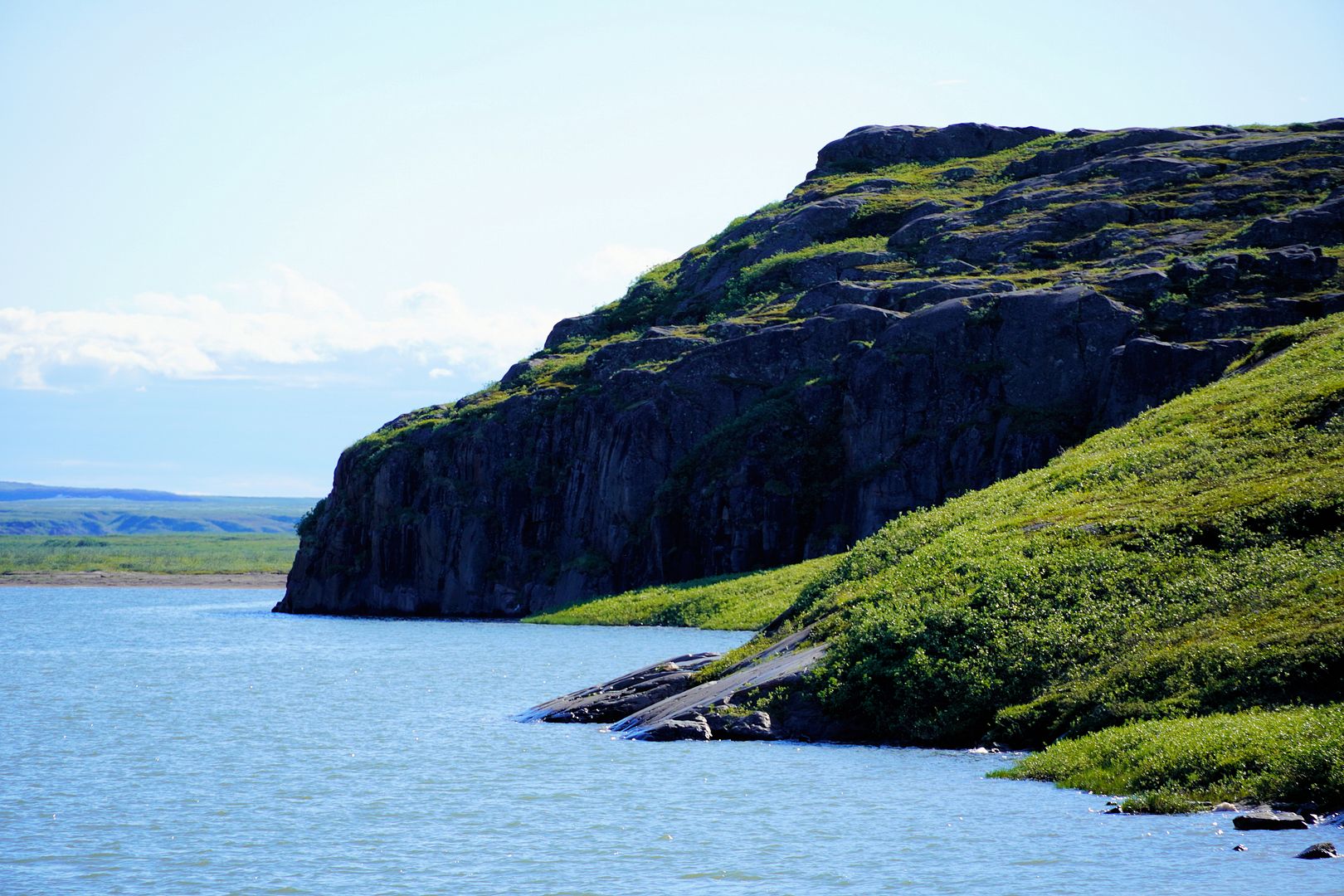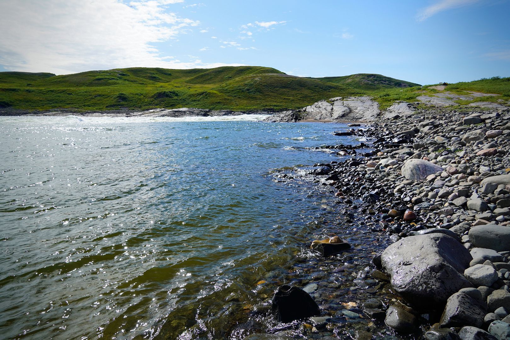 Sitting down nearby I scarfed down a turkey bacon wrap of my own. As I ate, a ringed seal only a stones throw away cared not about my presence there, as it continued on chasing after minnows in the shallows. Four Mile Bay seemed a rewarding place to stop.