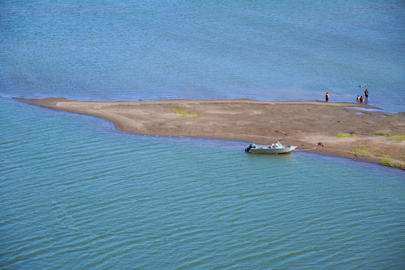 The boat and trailer attached to the ATV, we rode down to the launch. Bob forgot his smokes and, his gloves fell out onto the road but even he was wanting out of town bad enough there was no turning back.