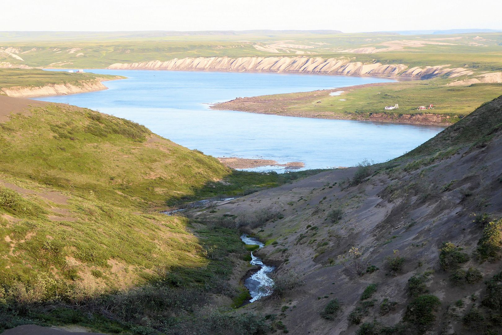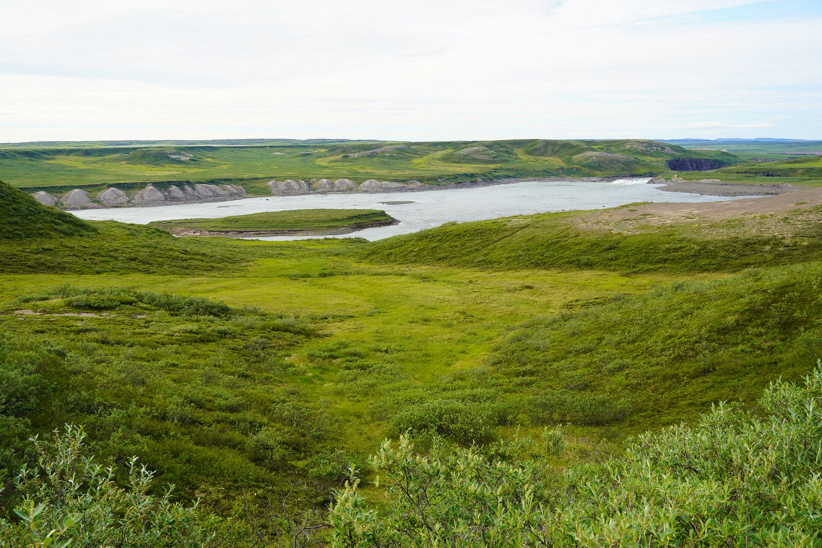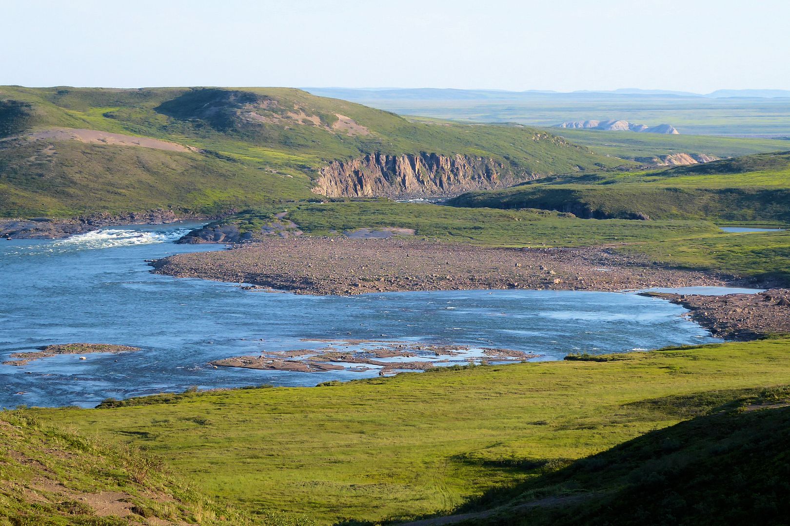 Outside of Kug is the “Bloody Falls Territorial Park.” The park follows along the Coppermine River to boundaries I have no clue about but, within the park is Bloody Falls itself. Arctic char there at this time of year or not, I planned to see it. Allan at the office did tell me that fishing there would be quite slow at this time but, just give it a few weeks. A few weeks is what I have.
