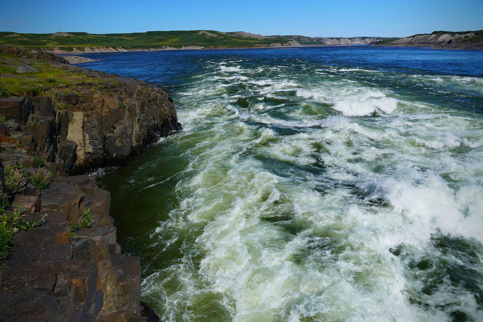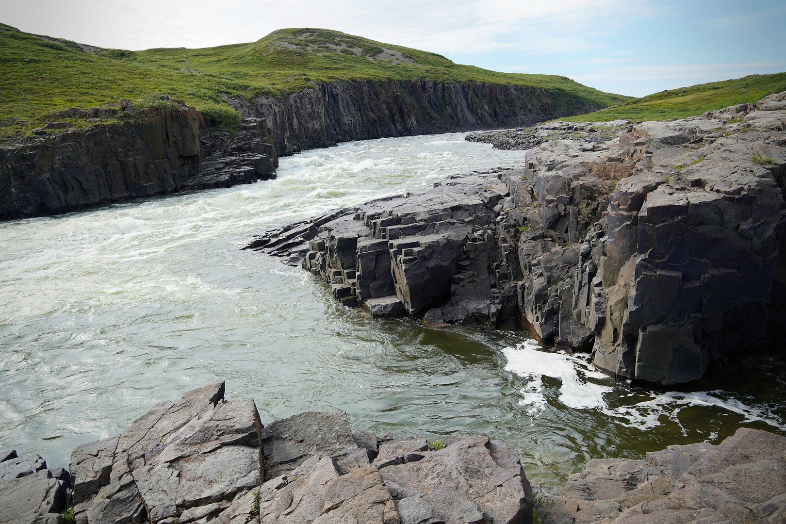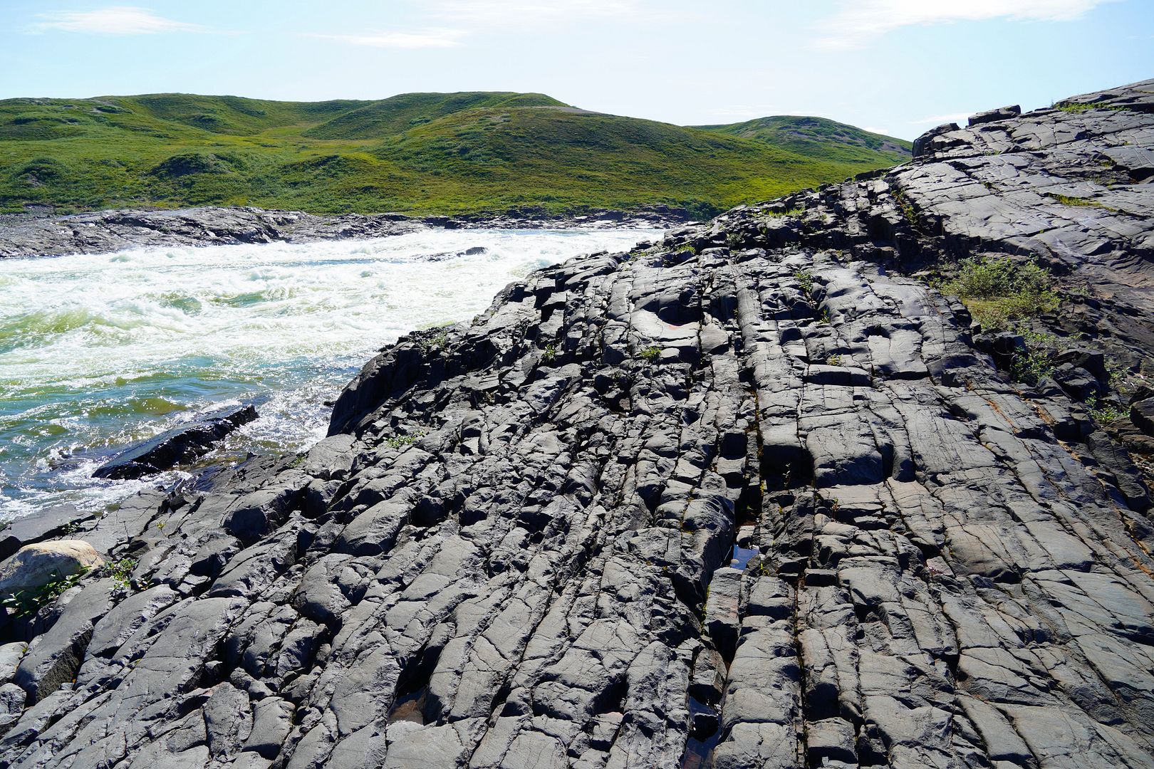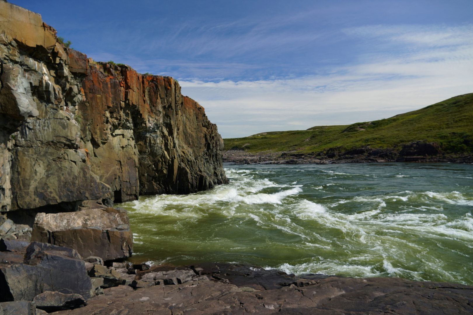 Outside of Kug is the “Bloody Falls Territorial Park.” The park follows along the Coppermine River to boundaries I have no clue about but, within the park is Bloody Falls itself. Arctic char there at this time of year or not, I planned to see it. Allan at the office did tell me that fishing there would be quite slow at this time but, just give it a few weeks. A few weeks is what I have.