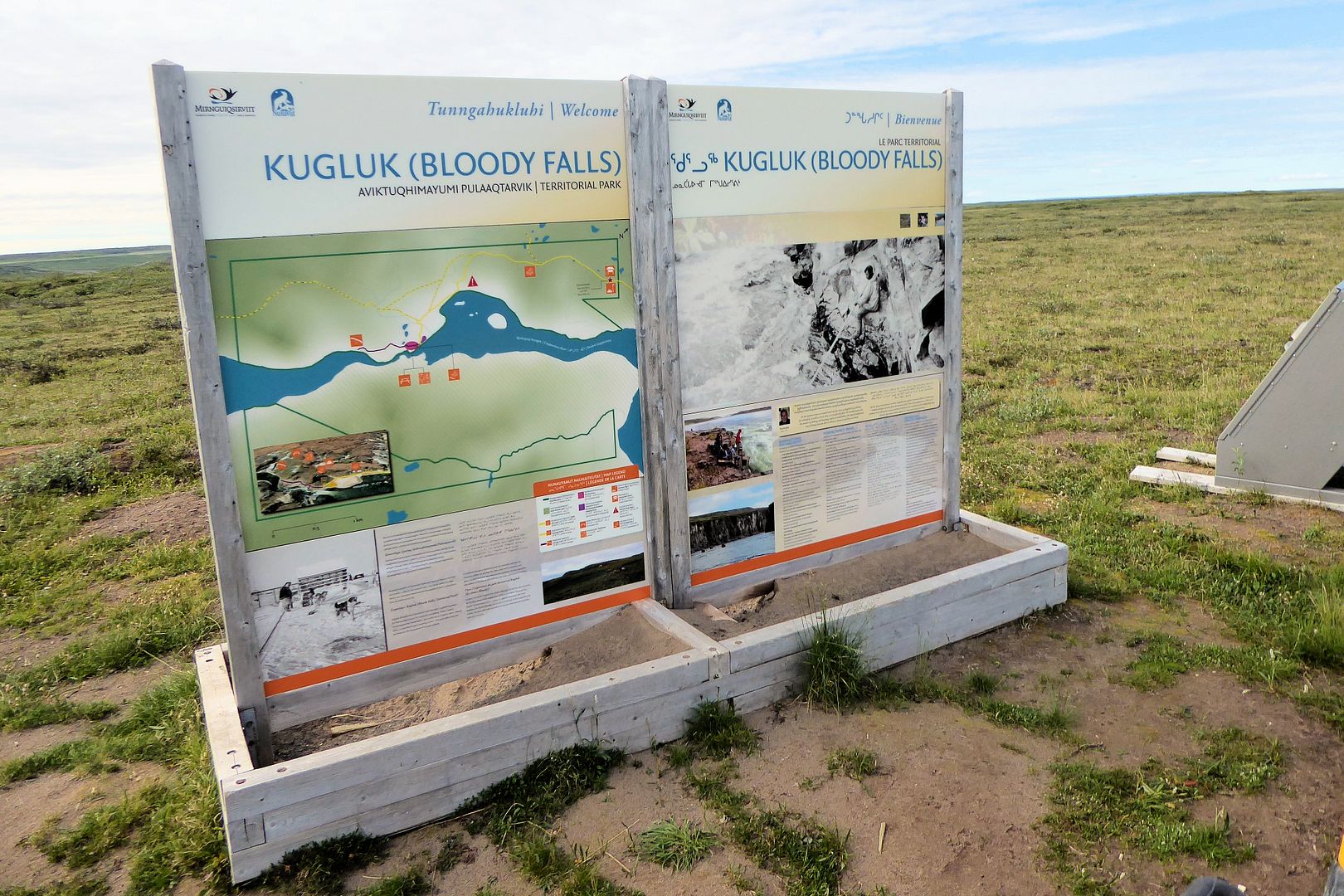 At the falls were some plaques with interesting literature, here’s a little of that. Do take a minute to hit the Wikipedia link as well, there you’ll learn a little of the mystery yourself, and how Bloody Falls came by it’s name.