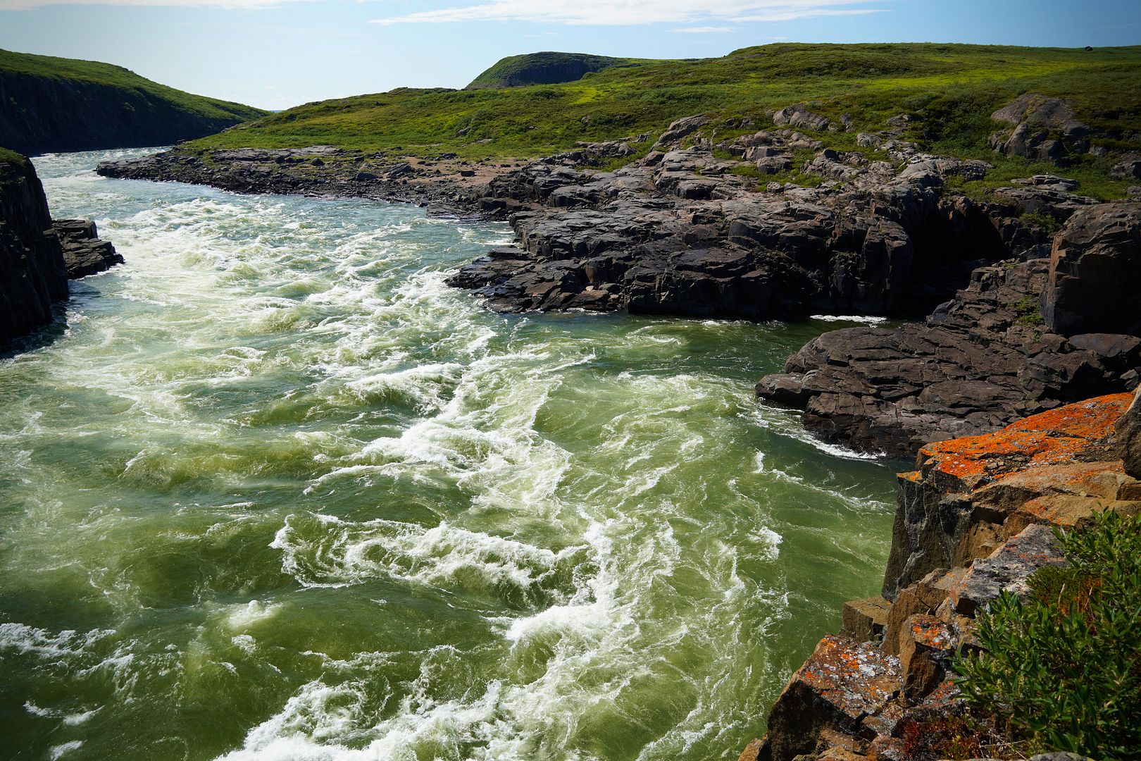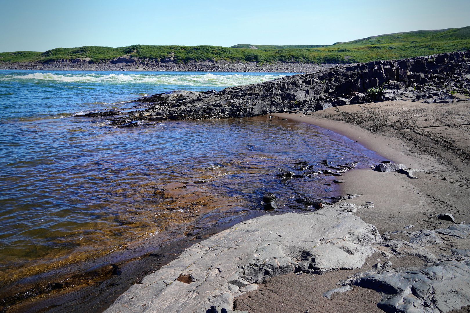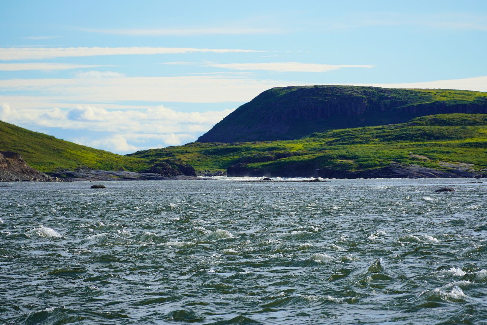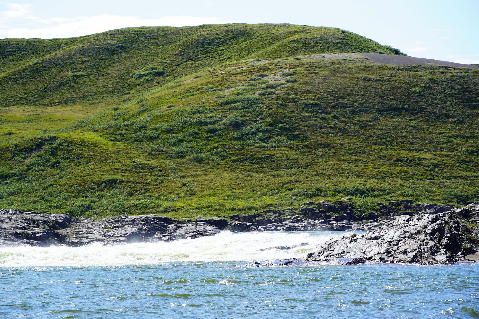 Much of the towns folk must have paid up because on the water that evening there were boats launching to head out everywhere. Most wanted to go east, searching for the char feeding on capelin at sea. Bob and Carol having less time on their hands; likely because of my schedule, we were the only boat to turn the bow upriver and race up towards the Bloody.