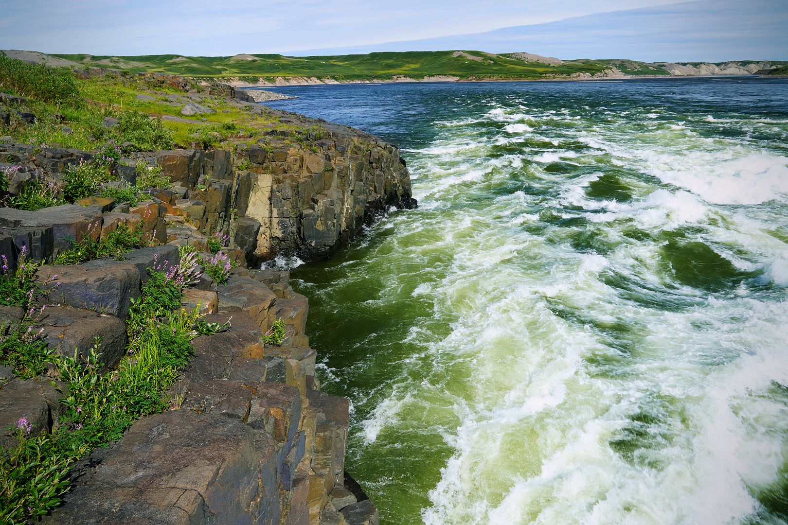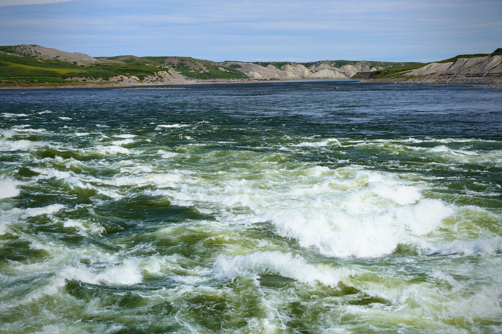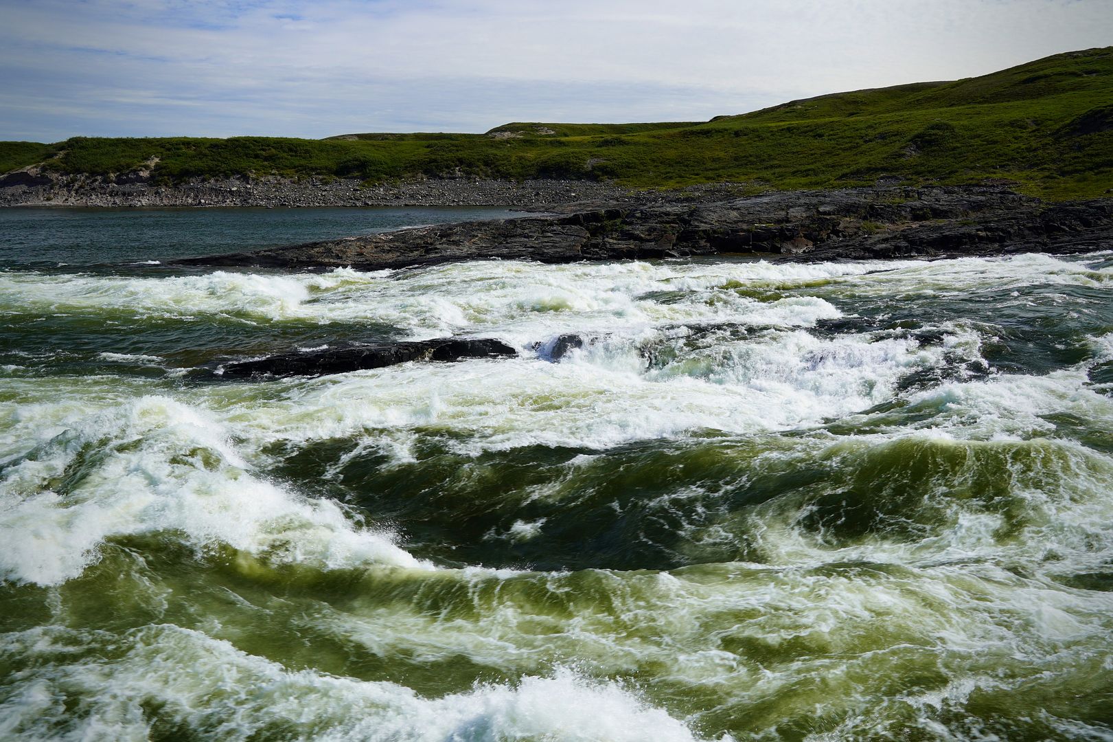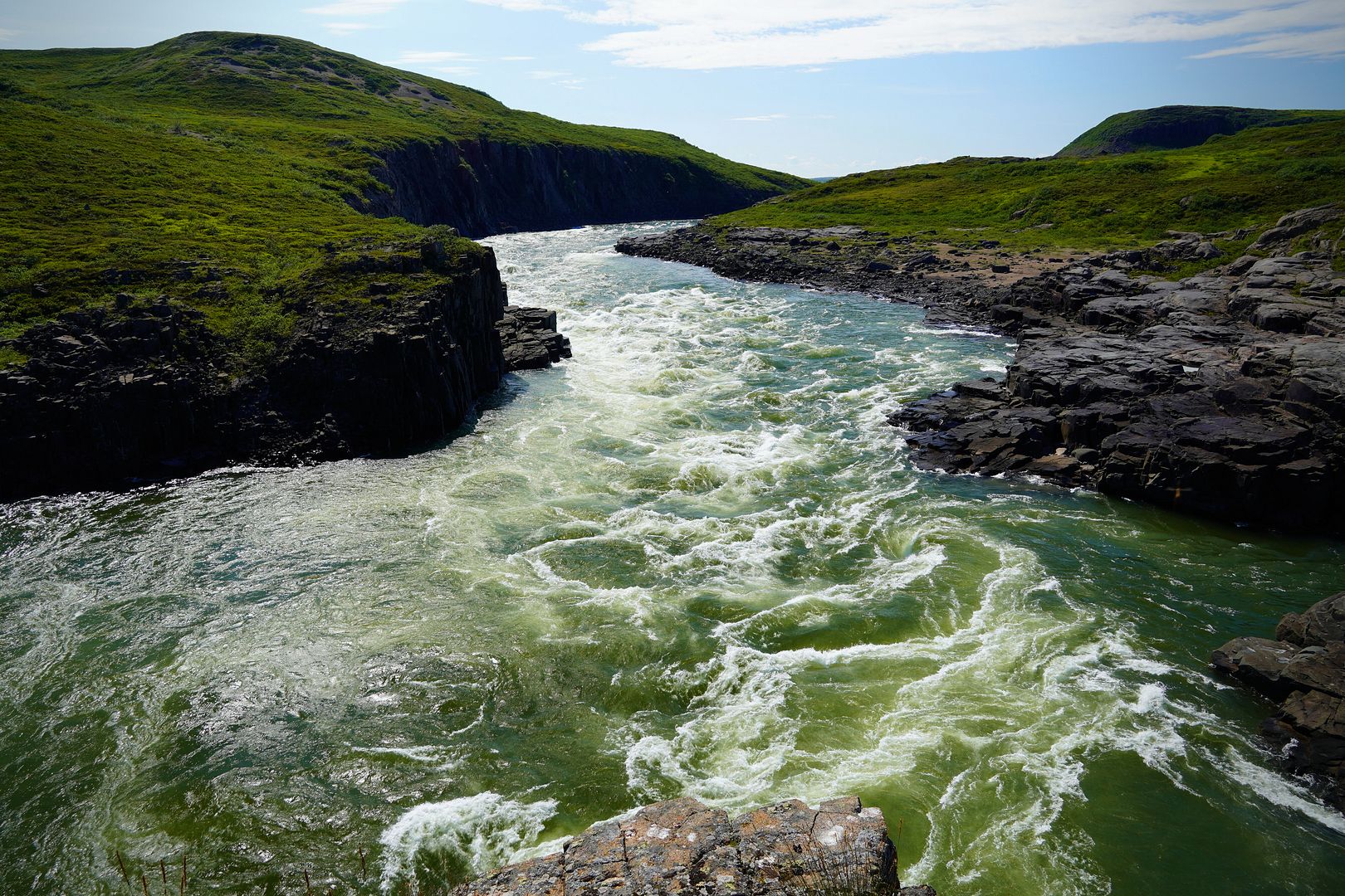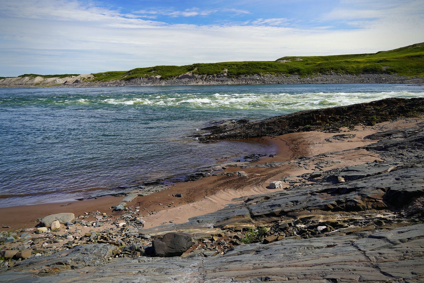 Much of the towns folk must have paid up because on the water that evening there were boats launching to head out everywhere. Most wanted to go east, searching for the char feeding on capelin at sea. Bob and Carol having less time on their hands; likely because of my schedule, we were the only boat to turn the bow upriver and race up towards the Bloody.