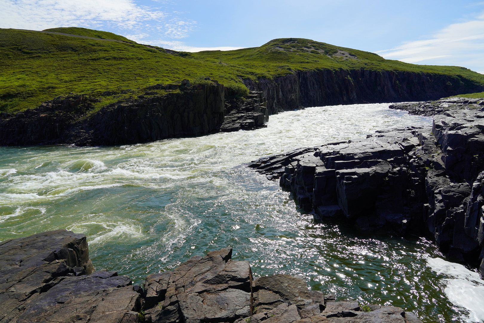Really took the time to take it in. Dipped the water bottle into the river, sat awhile on one of the benches above the falls, shed a few layers to cool down, took a selfie or two and was pleased the mosquitoes were hiding in the shade of the alders.