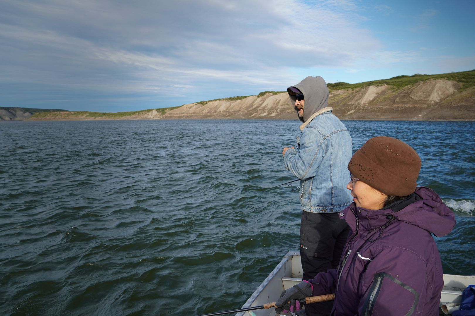 Friday evening Bob and Carol’s smiles were warm and welcoming. Going fishing with them both on a boat ride up to Bloody Falls, it was enough for me to flip my mood and feel more relaxed. They’re on the good side, the good “heads” of the Kugluktuk coin. Despite holding 99% of my composure through that tiring week, those bottled up intensities needed a release and fishing is the cure…