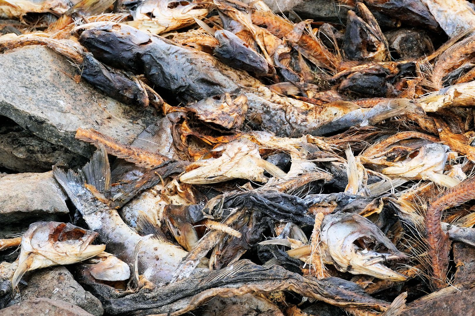 Location is key but timing is everything, something I often say with fishing. This mass grave for arctic char is proof of that. The summer runs to sea, thousands of char would have passed through this area just two, three, maybe four weeks earlier but now, nothing was here. Someone did well with their nets recently.