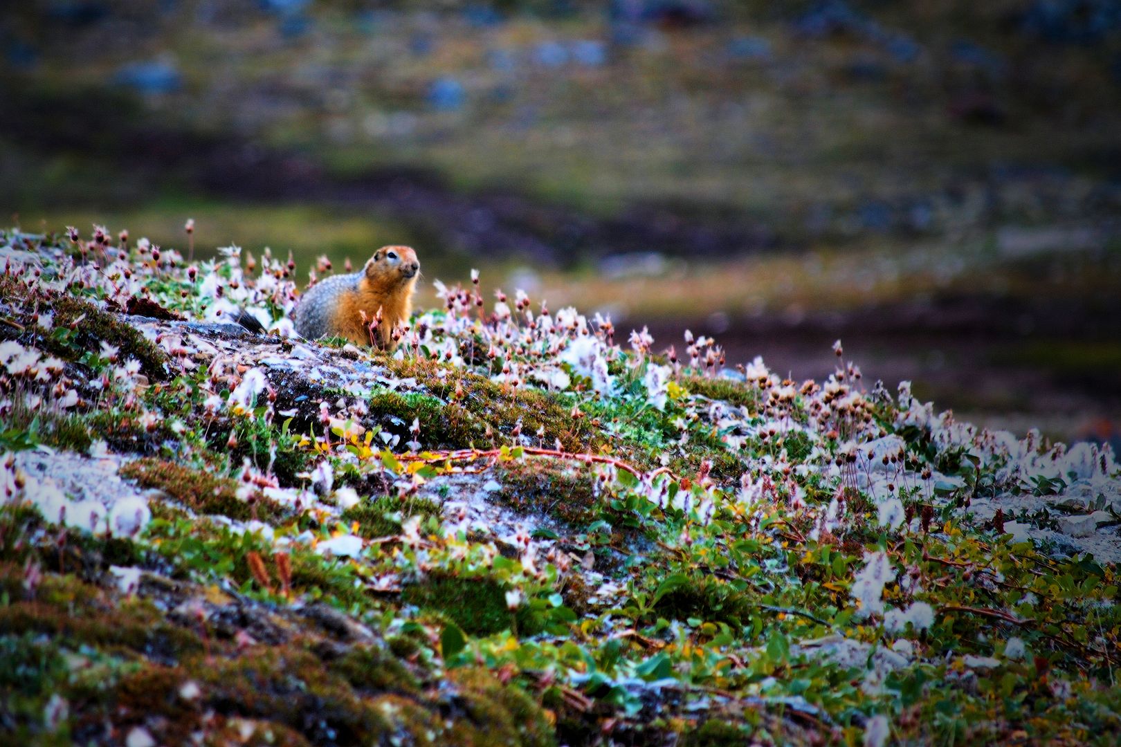 Back tracking I began down another road. Snowgeese littered the landscape, their young of the year unable to yet take flight, the little goslings do plenty of stumbling about when feeling the worry to flee a scary ATV. Other creatures just chose to watch me go on by…