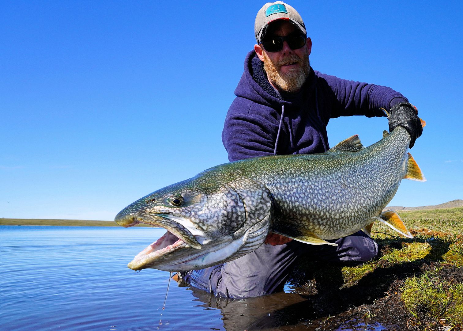 To say I wasn’t excited would be a gross understatement. Just a couple of weeks before this catch I was on Great Bear Lake fishing the world’s biggest lake trout! But this moment was different, unexpected, and surely something of a test. Lighter gear, shore bound, Nunavut, those things and more to consider, catching such a special lake trout in this very high arctic, slow growth place while on essentially a do-it-yourself kind of chance experience, what a gift! What a memory to make!