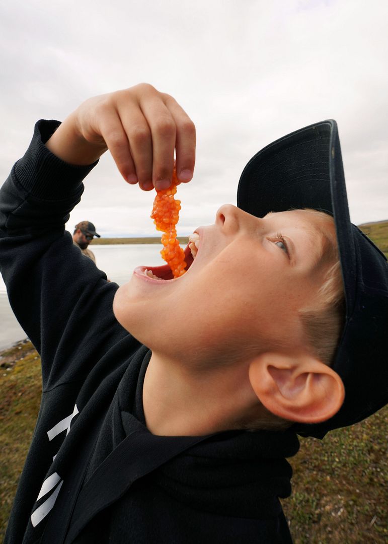 Lauren returned a short while later, sadly she had lost site of the caribou and it slipped away. A few minutes later we all heard a gun and kill shot in the distance. Some other hunter claimed the prize. All would be just fine though, Jordan kept busy at work catching food and it wouldn’t be long before Lauren took to processing it. William batted stones into the lake, Connor fell into some puddles and happily toured about watching us all cast away, Jonathan fished his little heart out awhile, the kids all ate some noodles and chewed gum and at one point some other local friends passing by stopped for a quick visit. Just an awesome family experience that is shaping the lives of these boys all the while creating amazing memories for each to one day look back on.