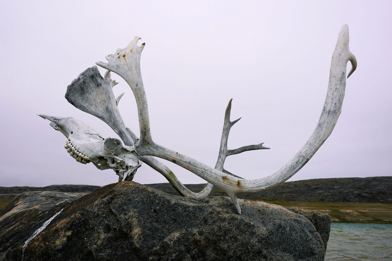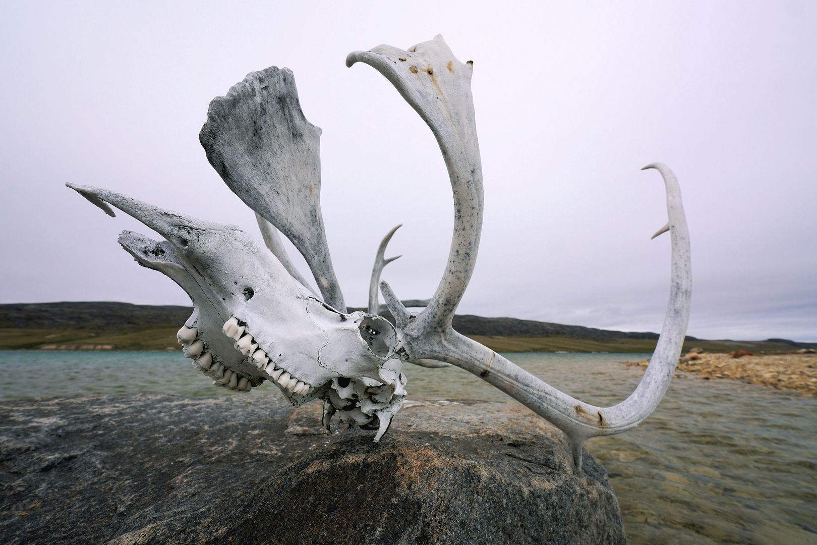 Along the way Heidi tapped me on the shoulder, “caribou” she said, “the first one I’ve ever seen.” We rode up close on the quad and snapped pictures, had we been hunters this food would have been a close range shot for sure. This place in Nunavut is full of caribou and remainders of many successful hunts lay like trees on the tundra.