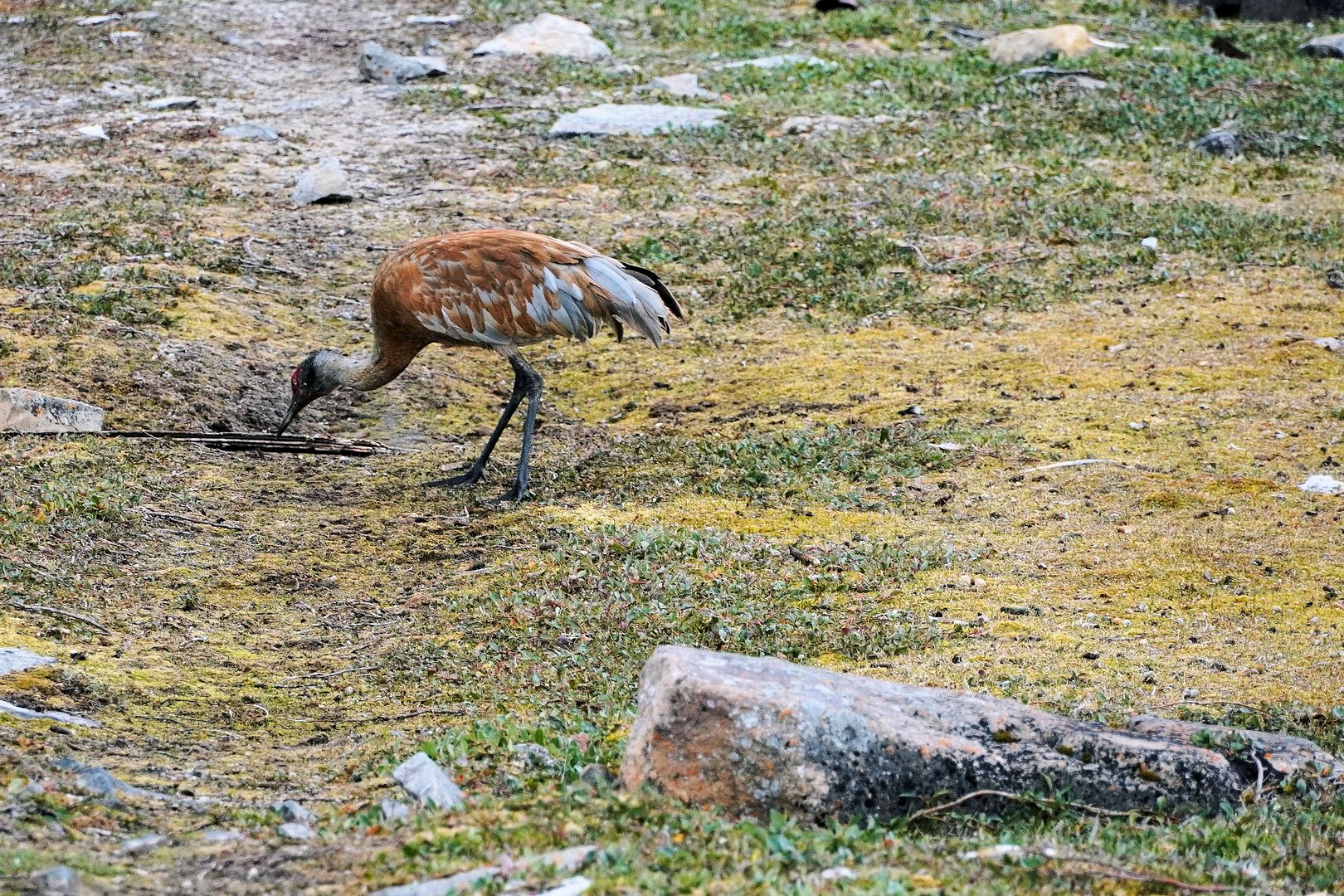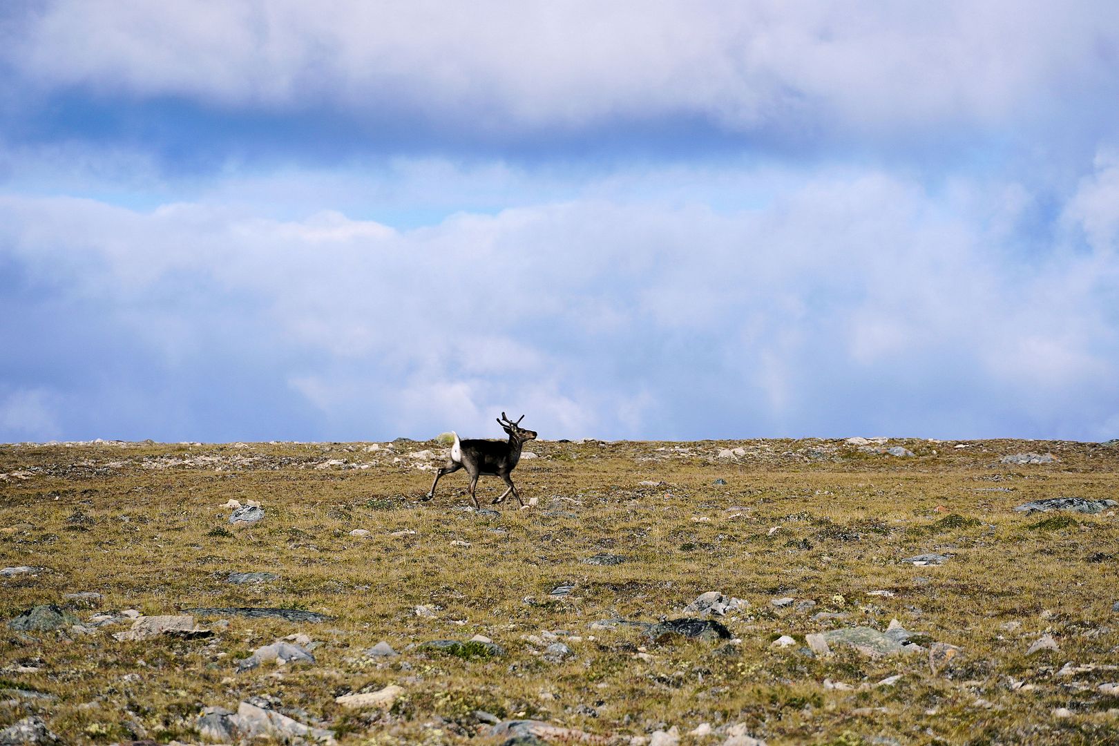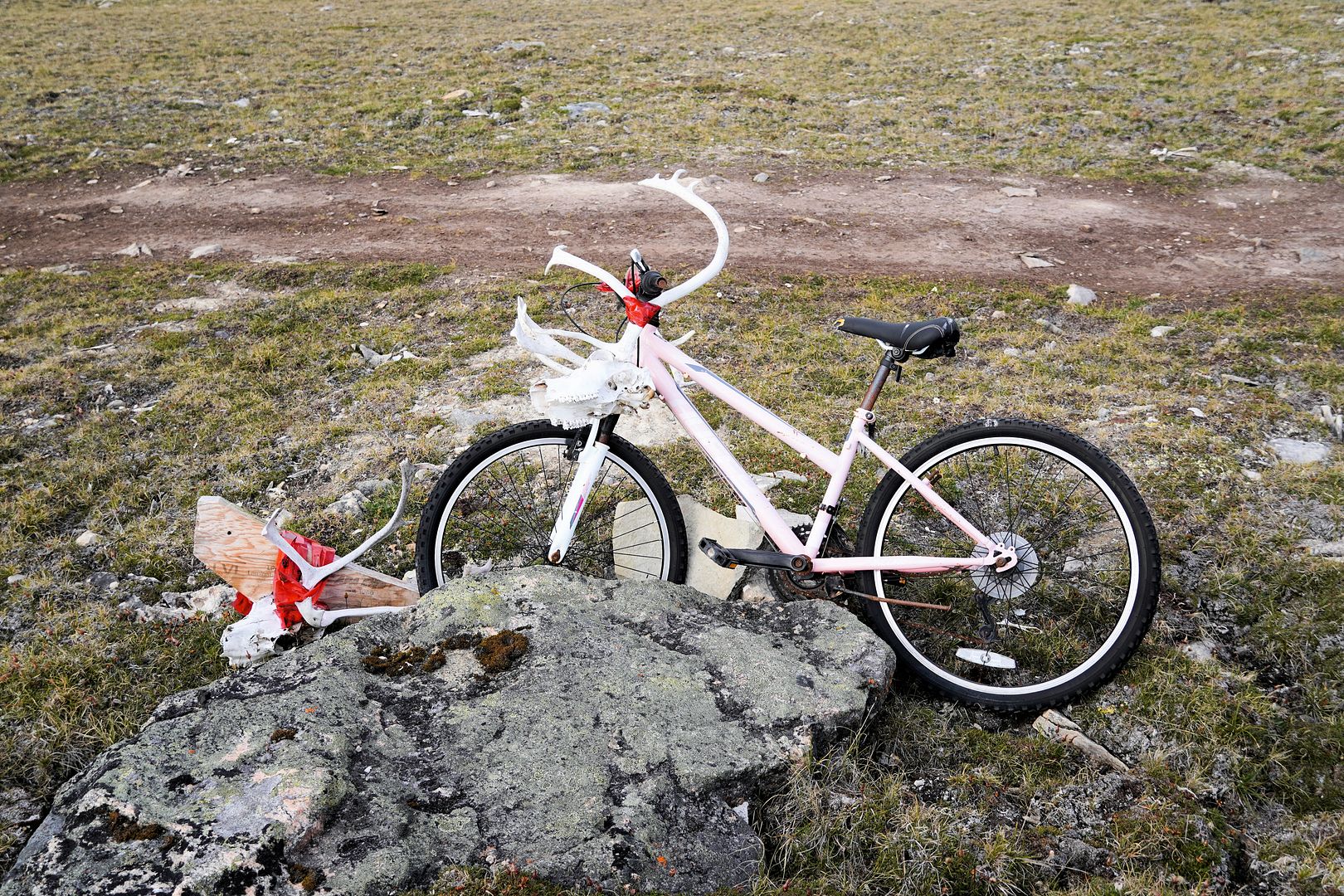 Finished with staging caribou skulls and racks I noticed the right rear wheel on the ATV appeared rather flat. FFS! Thankfully, packed was a small air compressor, cause one can never, ever go too far on the tundra without that, or a bicycle pump. So hooked it up and waited… and waited… and waited. FFSX2! Air compressor is hardly spitting any air at all. The tire may be actually losing air..?