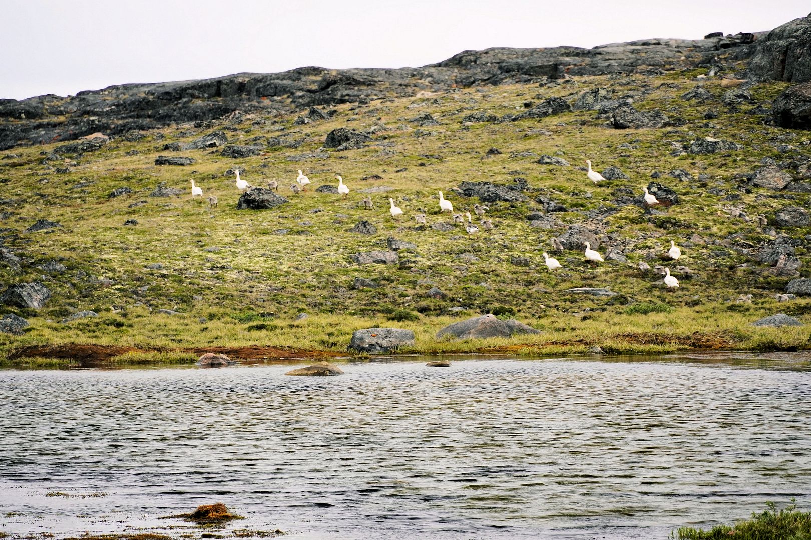 Approaching this lake point it became quickly obvious I was on the right spot. A boat! And in the boat a gill net and a fishing lure. It was apparent this was a fishy place. Not to mention, there were hundreds of filleted arctic char carcasses piled and spread over the ground and shoreline, while big, ugly, red buzzards and gulls were loitering about.