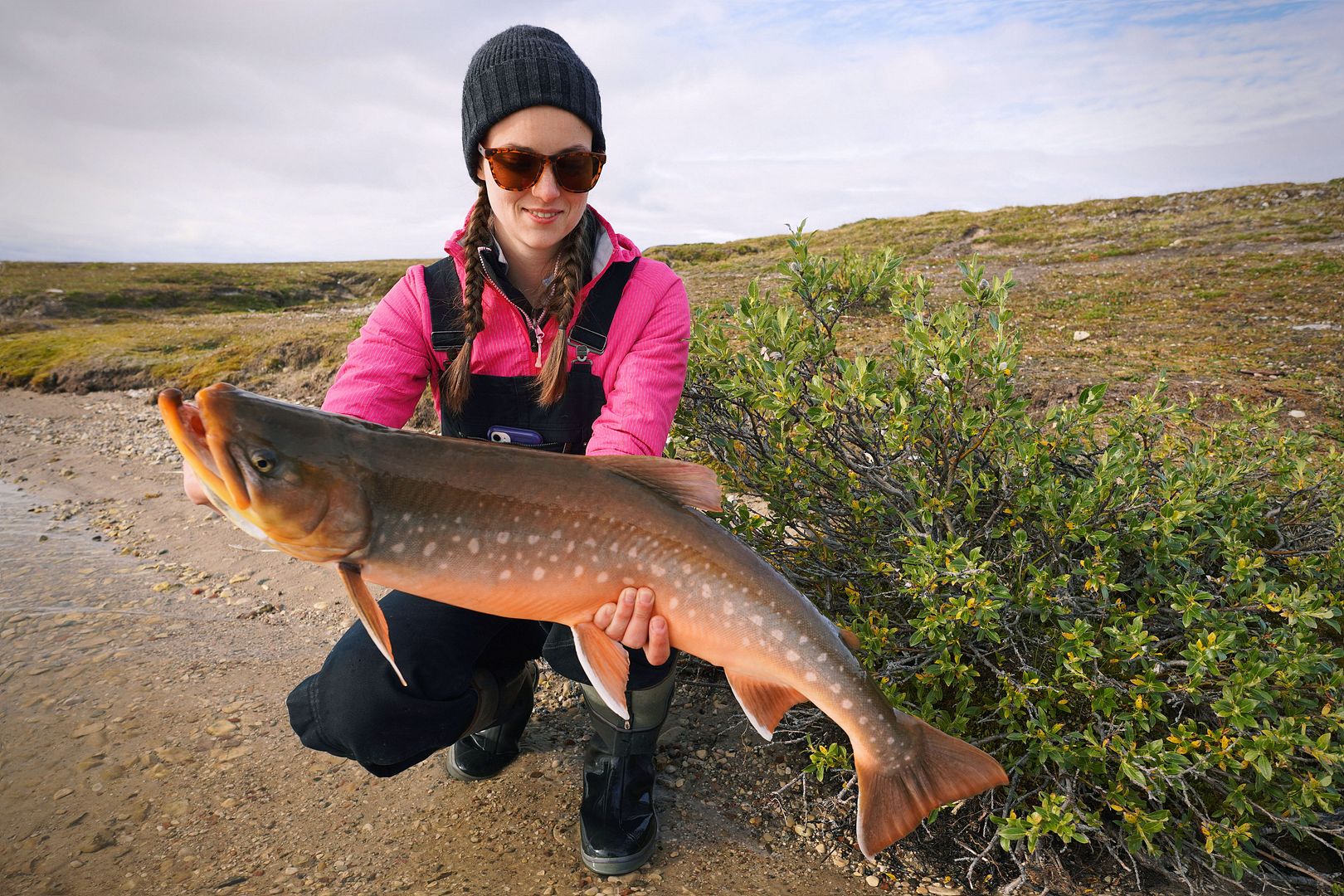 A 32-inch beauty hen char kept and then the biggest fish ever in Nunavut released, I was over the moon. Had read this quote recently which said, “the charm of fishing is that it’s the pursuit of what is elusive but attainable. A perpetual series of occasions for hope.” Well, I surely do hope for days like these pretty much every time on the water. I live for the great pursuit and the catch, so when something like this happens it makes for such an awesome moment. Have caught bigger lakers yep for sure, but in Nunavut never even close to this big and from shore, and where on water I was targeting something else. A wonderful surprise and one that makes an entire busy work contract so worth it!