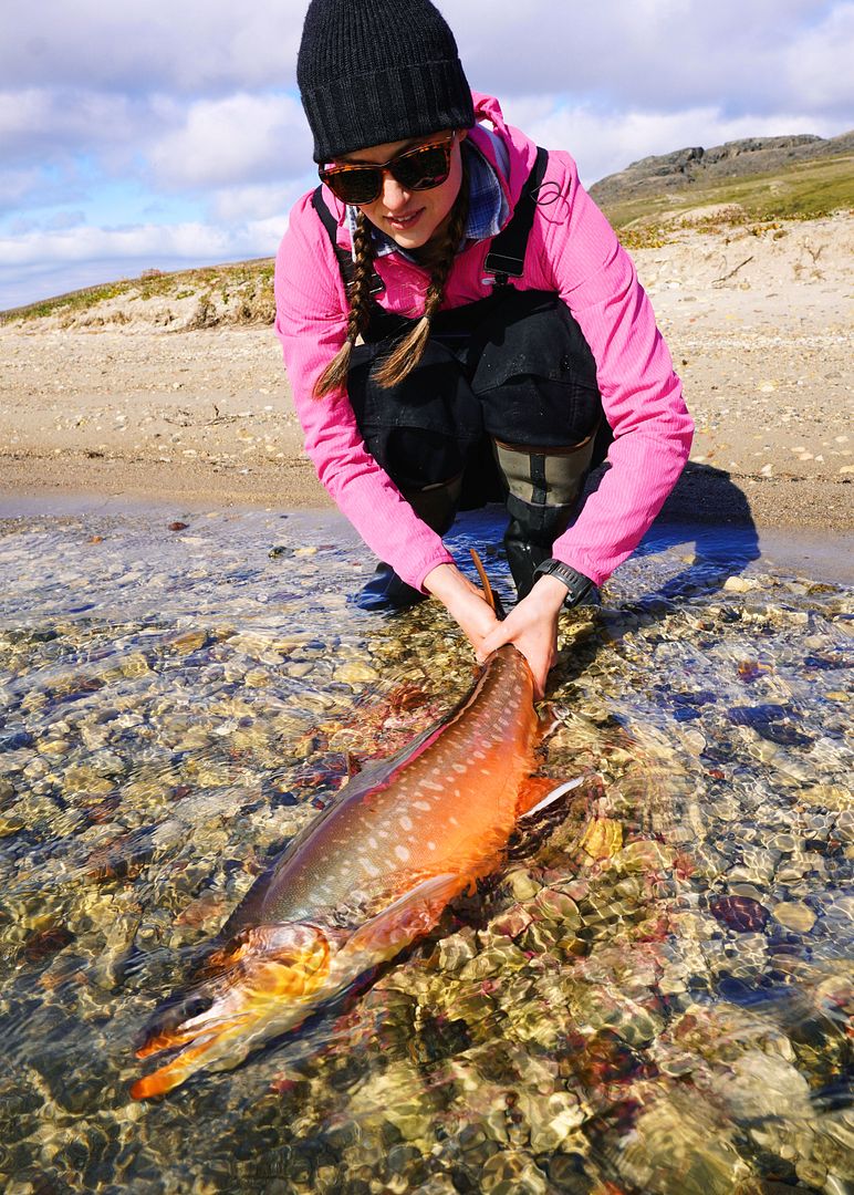 “Location is key, timing is everything, experience is golden, confidence a must.” And damn, some beginners and lady luck doesn’t hurt either. What an arctic char! What a wonderfully, colored up, thick male char! The one we’d in fact been looking for and, the first she’d ever cast to, hooked and reeled in all on her own. “Any chance for char” is all that it took, and having read this far you know by now what that really means. Heidi has little idea how many anglers would just die to catch a fish like this!