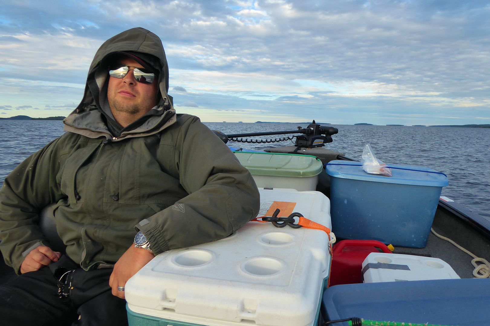 We broke camp in no time. In fact, we broke camp after having breakfast and loaded the boat in no time, before 9:00am we were shoving off shore heading back to the resort. An ENE wind would make for choppy travel, Stevie had to hold onto some things in the Lund from bouncing out, but in a couple hours we’d arrive safe. Saying our goodbyes, the Agent left for home and I settled to rest into a cabin.