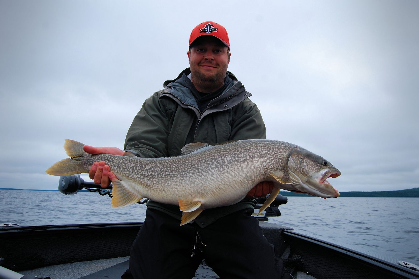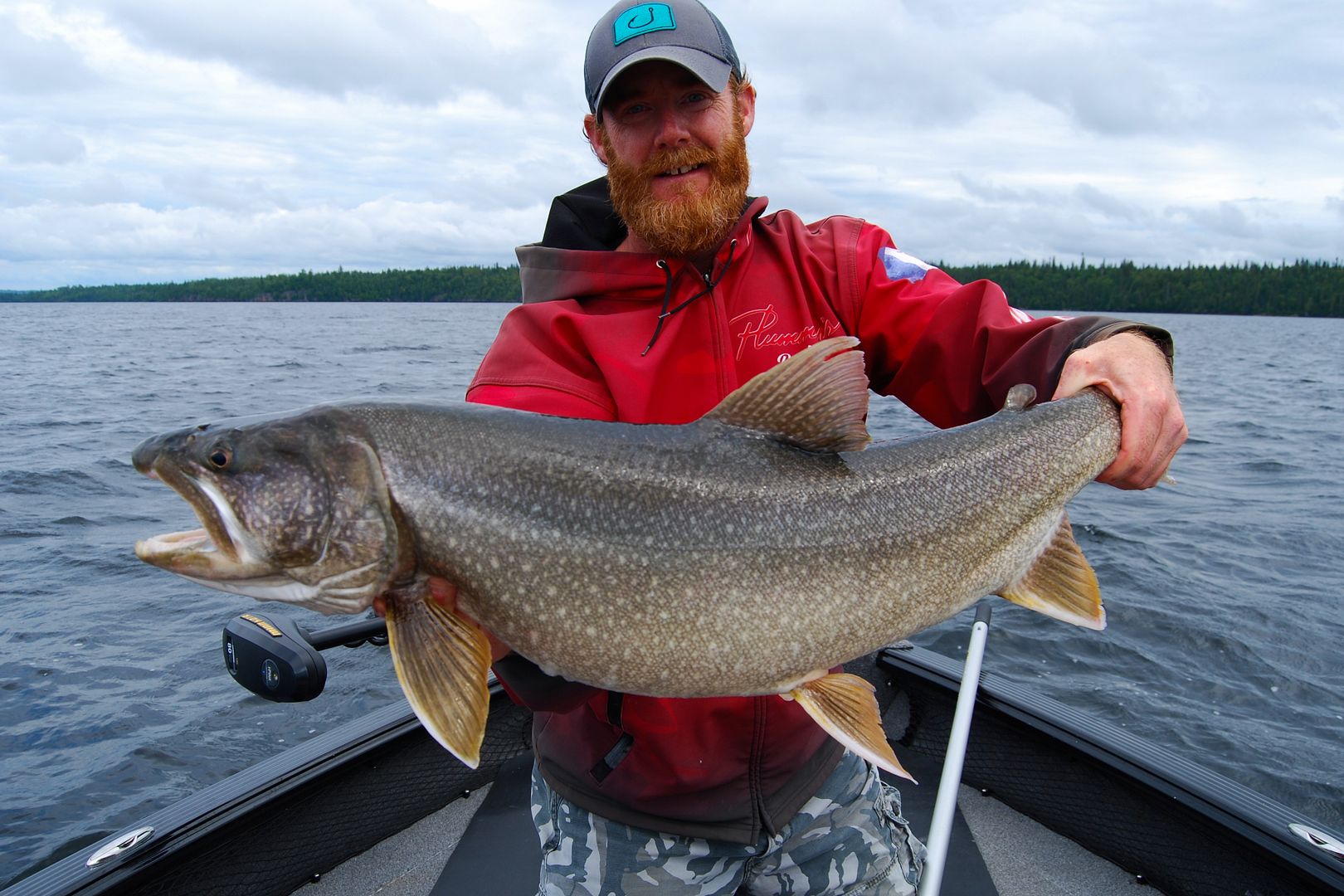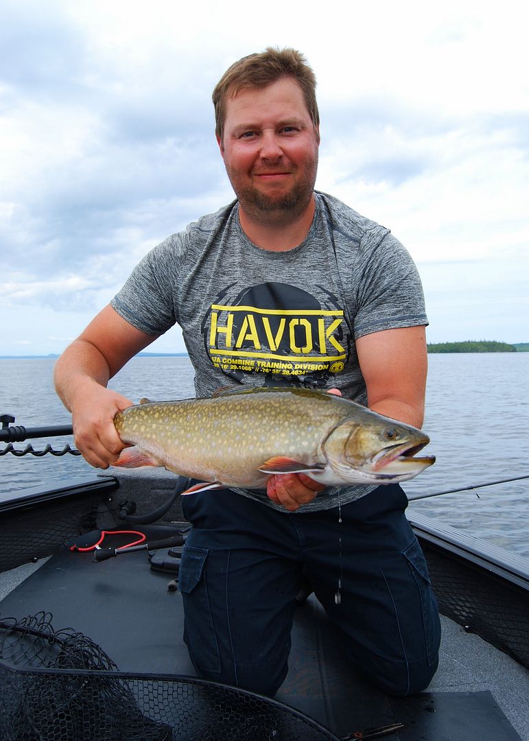 After returning to camp for a proper breakfast around 1000am, back on the water I’d notice Gord Ellis out and about in his nice new Lund, the fellas I’d met in their white Pro-V were fishing and a couple other boats made it out too. All seemingly after specks, a rigger ball off Bambalam dropped my spoon and soon as it hit depth it got smashed. Marking plenty arcs high up, there was a real good vibe that lakers were on. Boy was that right! I’d go a quick 6 for 8 in a couple hours before even the video catches me retreating to smoother seas before a quick thunderstorm hit. Awhile later in the mid afternoon I’d drop again to pick up two more before rains rolled in around supper time.