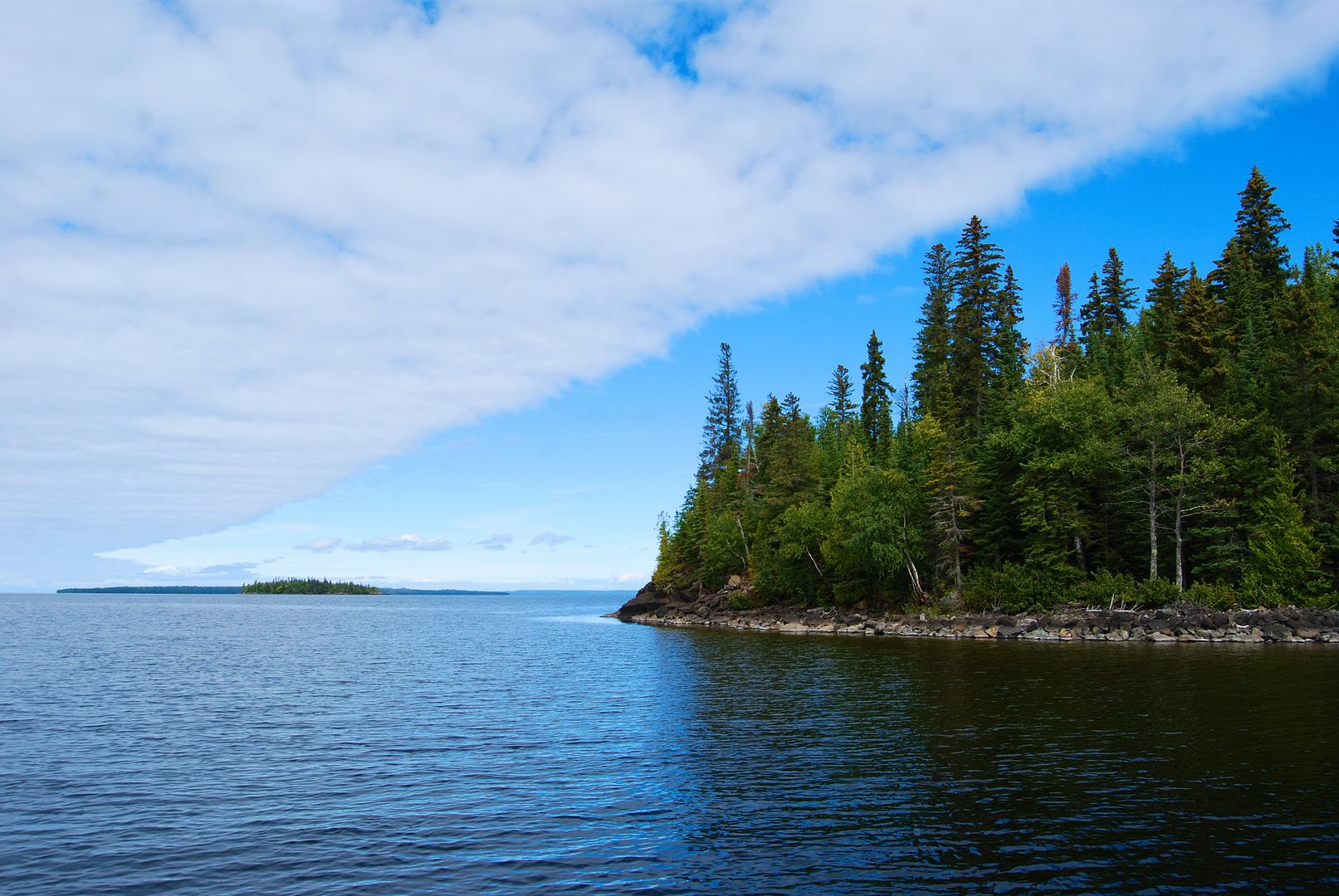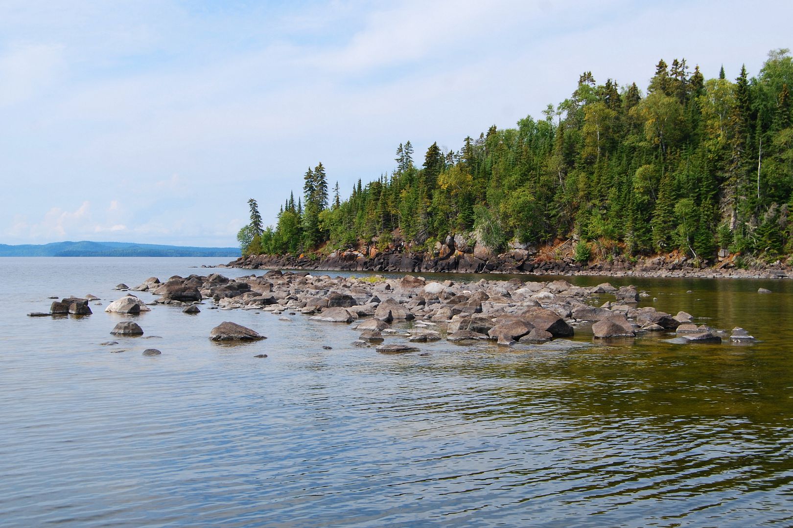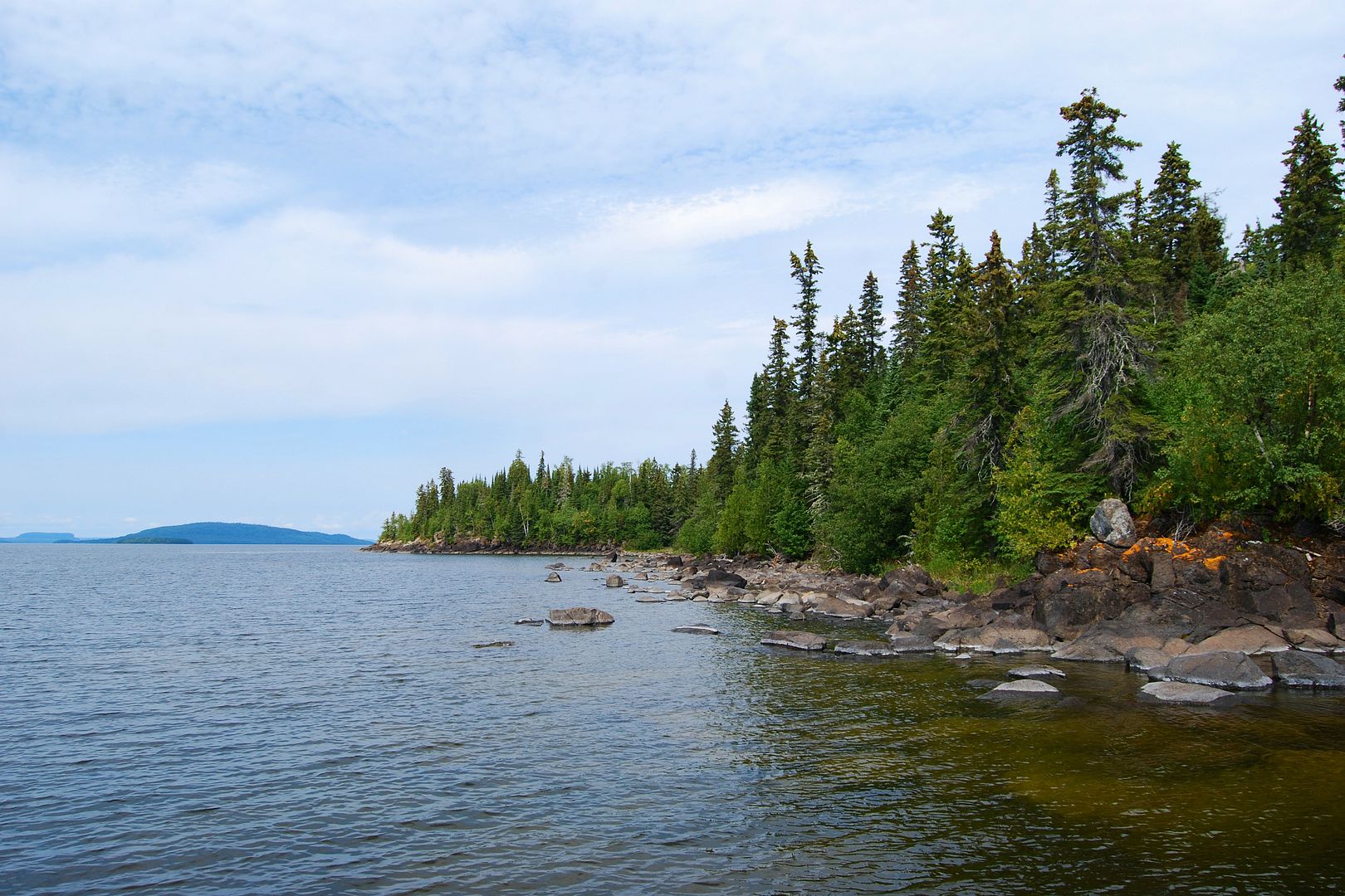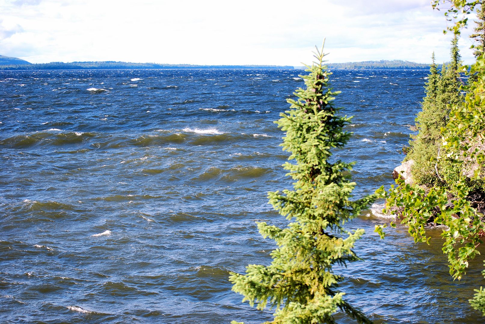 Alone and quiet awhile, the early afternoon gave chance to re-organize my boat and things. Later I’d meet up with Rob to shoot the breeze, then by 4:00pm I launched the boat and drove down to the river mouth to try for some walleye around the islands there. Not at all prepared with much of anything for trolling eyes, I had but one blue/silver Husky Jerk in the box for lakers that I figured on a slow troll with lots of line out might just get down to some fish.