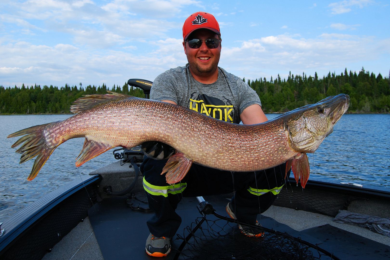 I’d catch a 46 incher too. Maybe not as thick as Stevie’s but close, I clipped on a musky lure and tossed something entirely new. Big lure for big fish, why not? Well, it was after fourth cast but before the sixth that I felt some good weight hit it and run. No setting the hook, this pike wanted this lure dead. For both mine and Stevie’s 46’ers, you’ll have to watch the video.