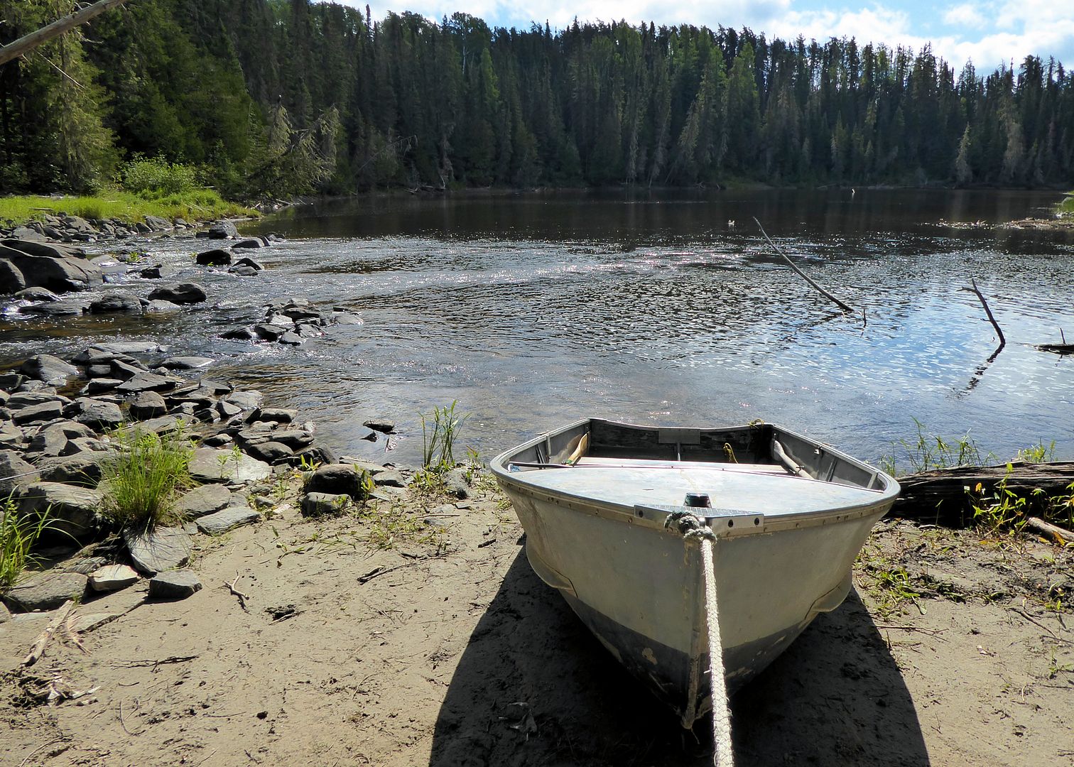 We got on the road early next morning. Stevie would follow me in his truck while we made our way the final five hours to Onaman. Timing took a little longer than usual for I snapped the carriage bolt holding the bracket which attaches the transom saver post to the trailer. Fortunately the hardware store in Longlac was open and had plenty of replacements.