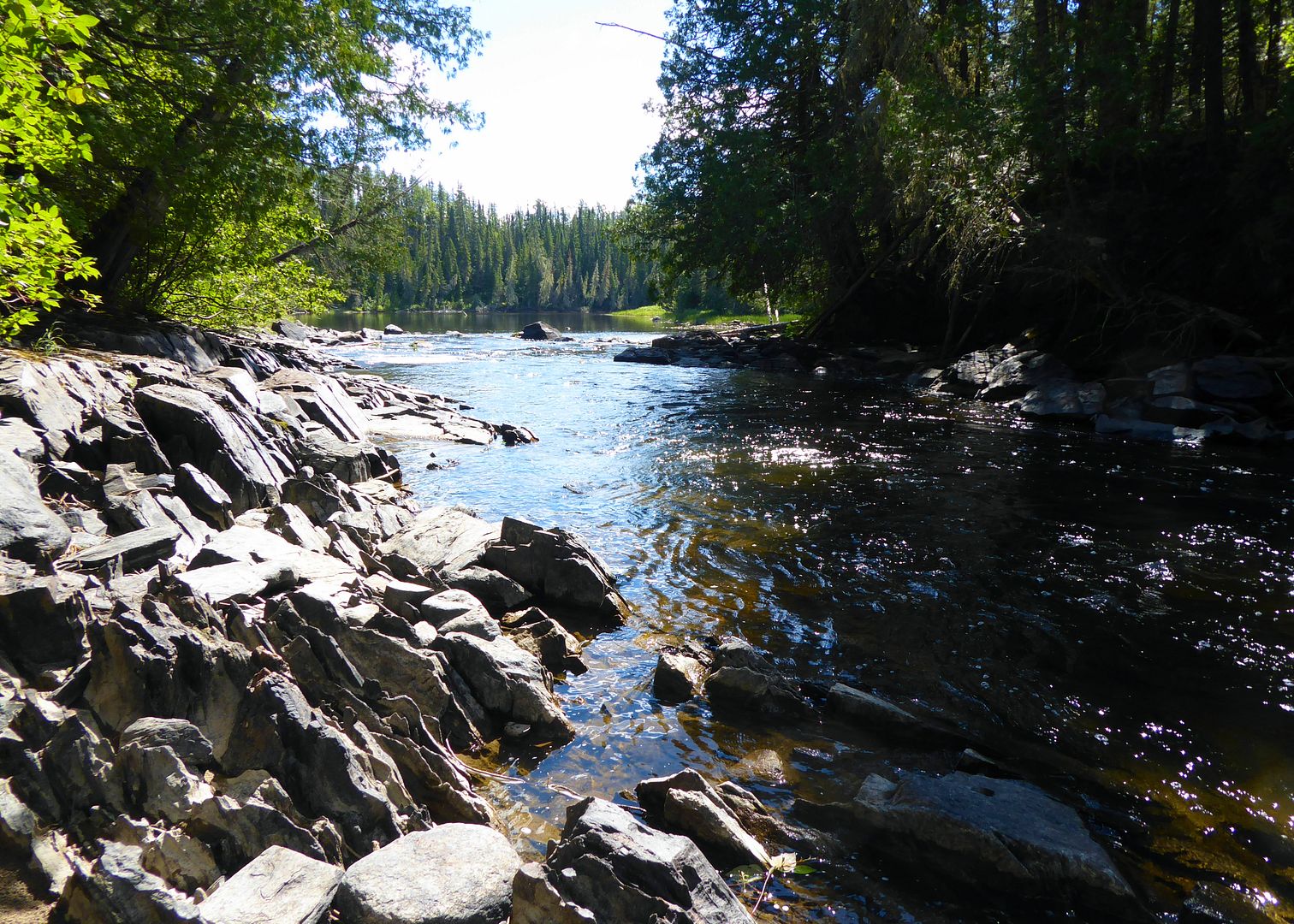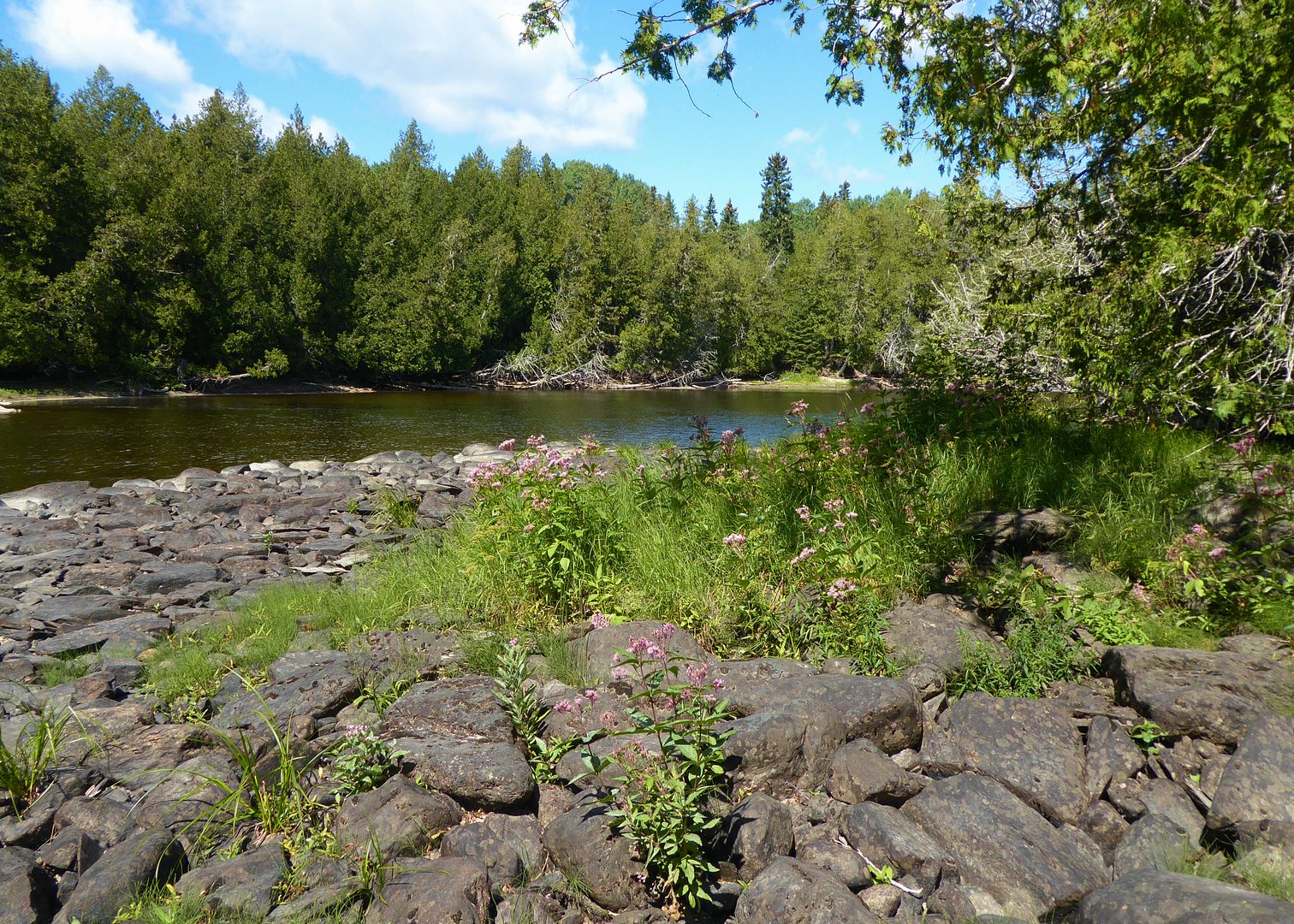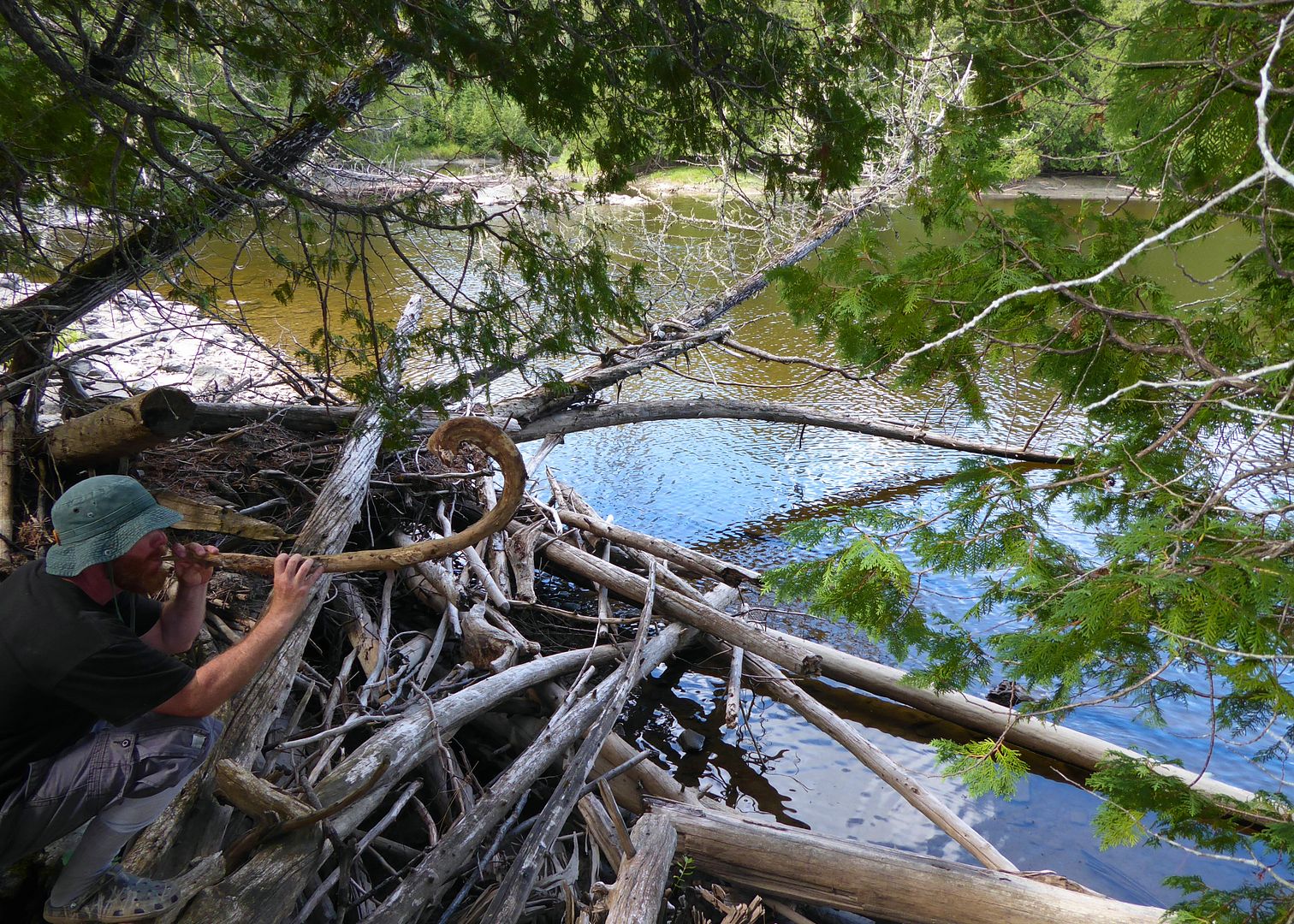 A big and gusty onshore wind had the mill spinning. A no-go for the big lake, I decided to walk and whack the bush along the Onaman River. A trail leads down to the water just off Rob’s driveway in to the resort, once picking it up I began to skip happy like an adventurous kid again.