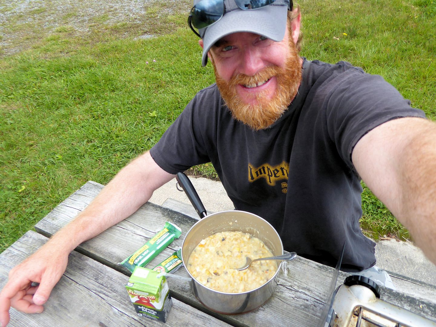 Cooking hot overnight in the cabin, groggy while preparing breakfast, through half opened eyes and the window I spied Wilf already out and about. Through the morning he and I would visit awhile then Rob would rise and we’d spend ti’ll 11:00am shooting the shit. Their company quite well enjoyed, we didn’t talk much about the big downers in todays life. I can’t begin to explain how many times I’ve offered to help Rob with things online and website related, and although he nods yes, it never comes to be, Rob is a one man show and that’s his way.