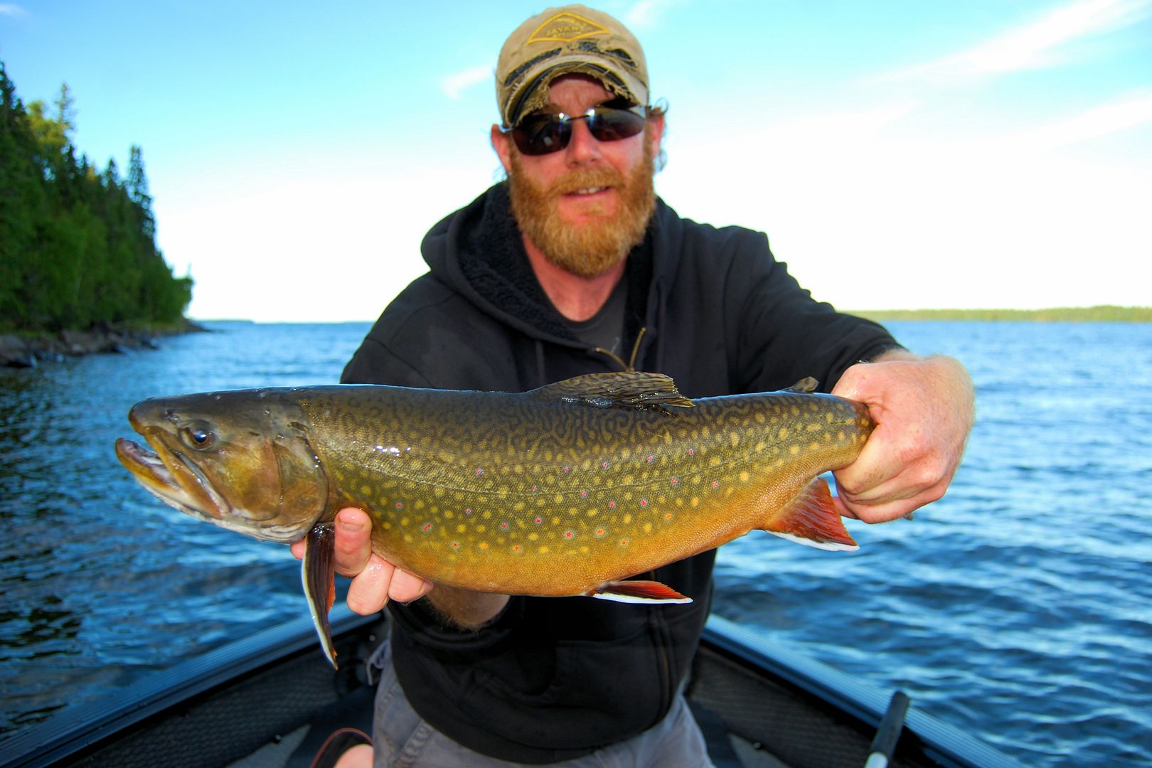 The intense storm lasted four hours. Gord and Chad left, Al, Mark and myself remained behind under cover. An afternoon spent sharing stories of all things fishing with two fellas as passionate about brook trout, memories on the water and Nipigon, it was my absolute pleasure to be in their company. Having known Al for some years now through fishing forums and his incredibly informative Nipigon brook trout website http://brooktroutheaven.com/ it was nice to finally do more than wave at each other on the lake or only message online. Impressive are his studies about the fish and fishery, and I’d share with him a collection of maps and experiences as well.