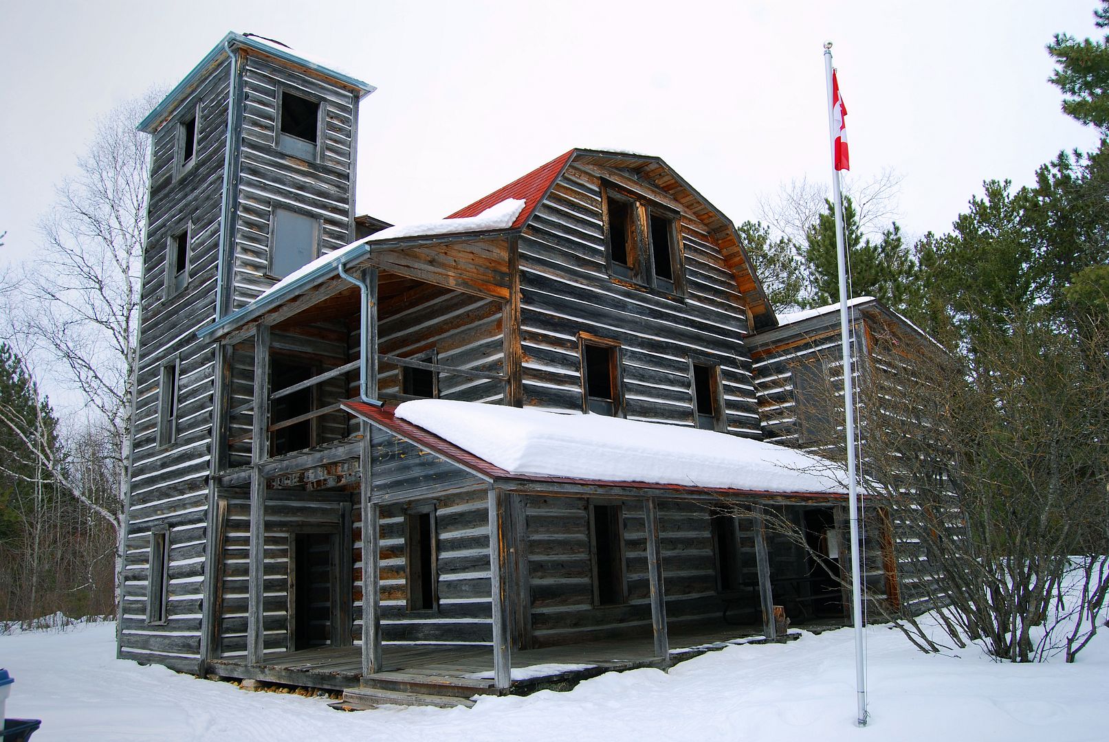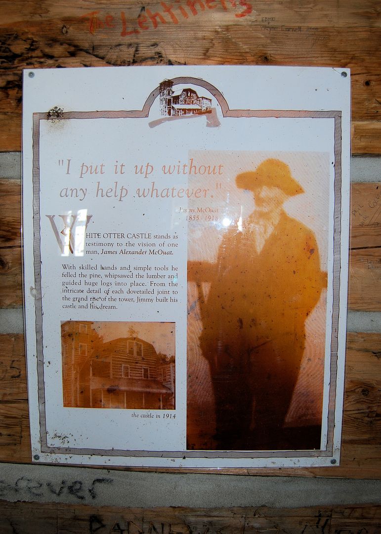 McOuat built his castle single-handedly, beginning in 1903 when he was 51, and finally completing it in 1915. He felled and cut all of the red pine logs himself, and hoisted the finished, dovetailed beams (some of them weighing as much as 1600 lbs) into place by means of simple block and tackle.