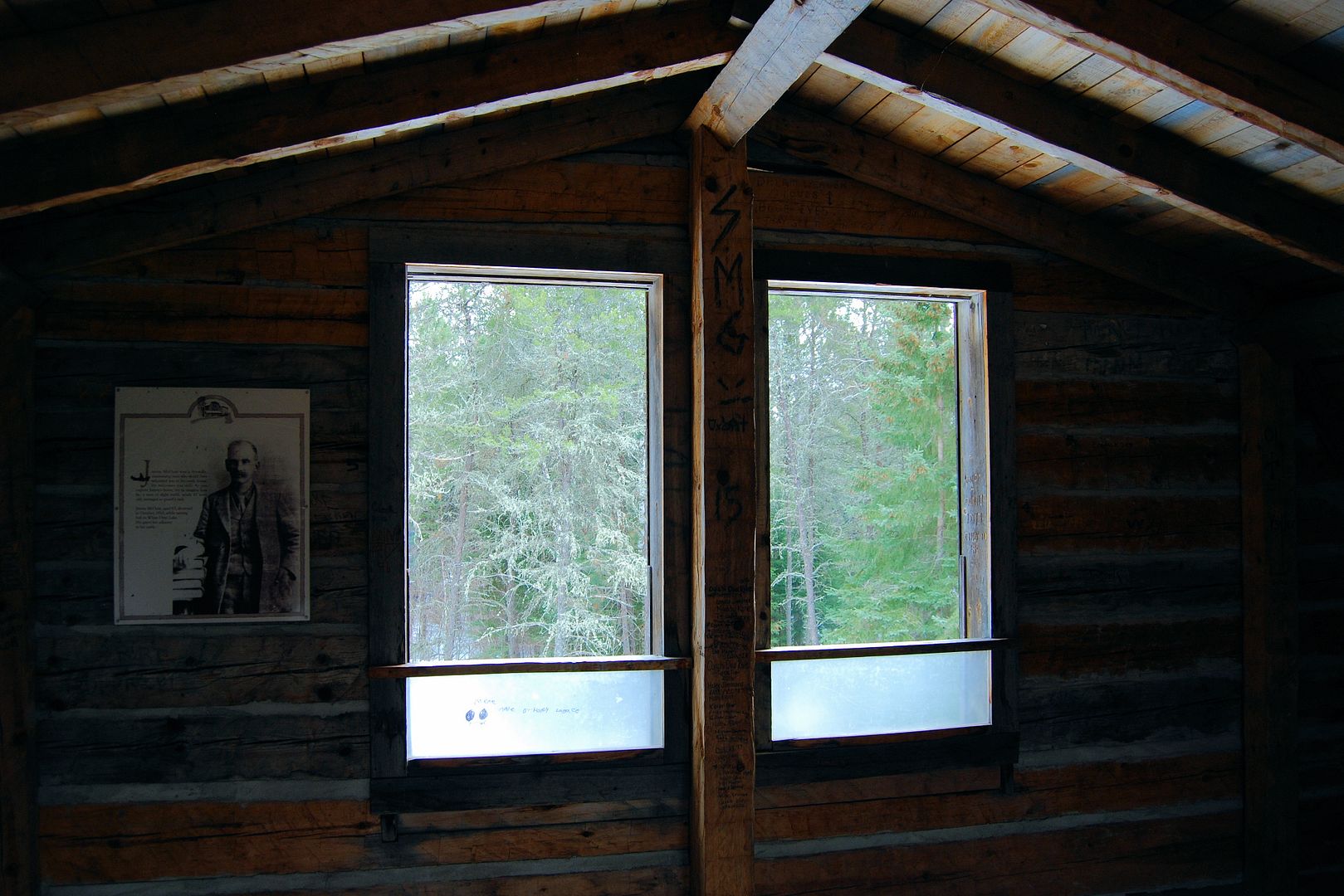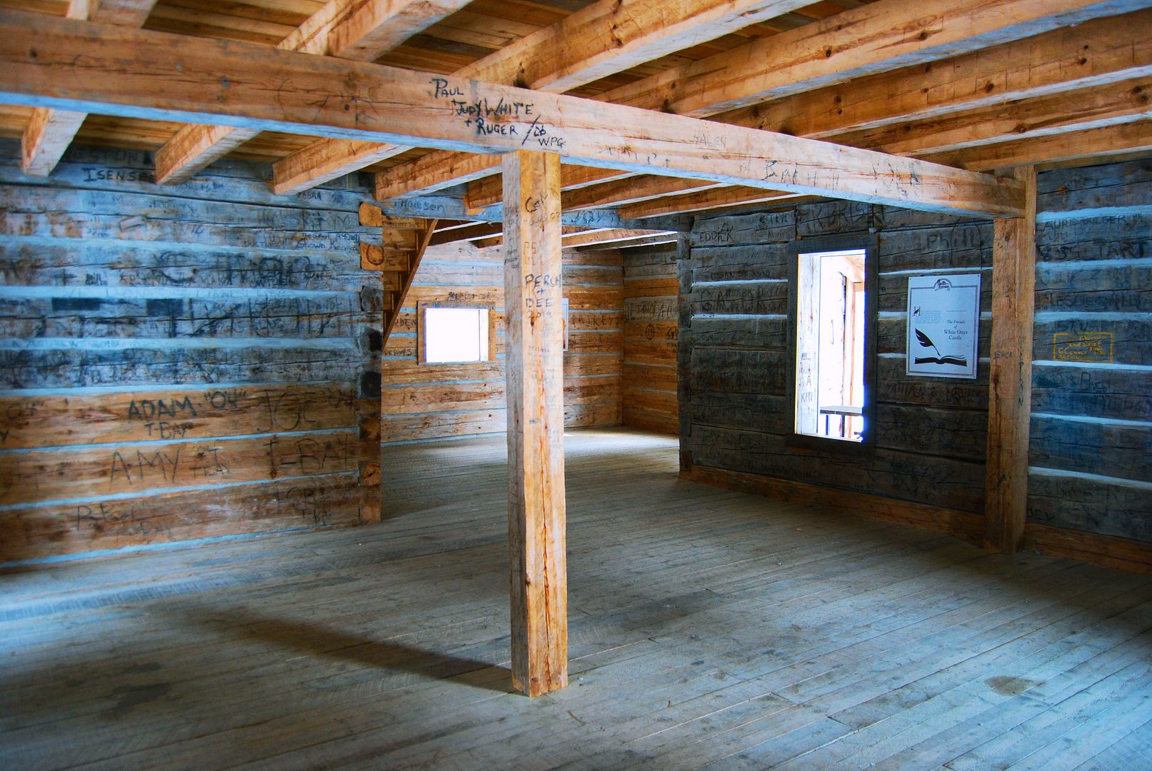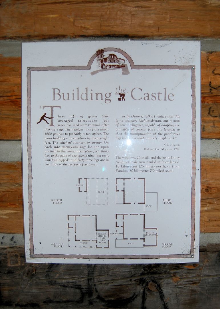 Reads: “I put it up without any help whatever ” With skilled hands and simple tools he felled the pine, whipsawed the lumber and guided the huge logs into place. From the intricate detail of each dovetailed joint to the grand rise of the tower, Jimmy built his castle and his dream.