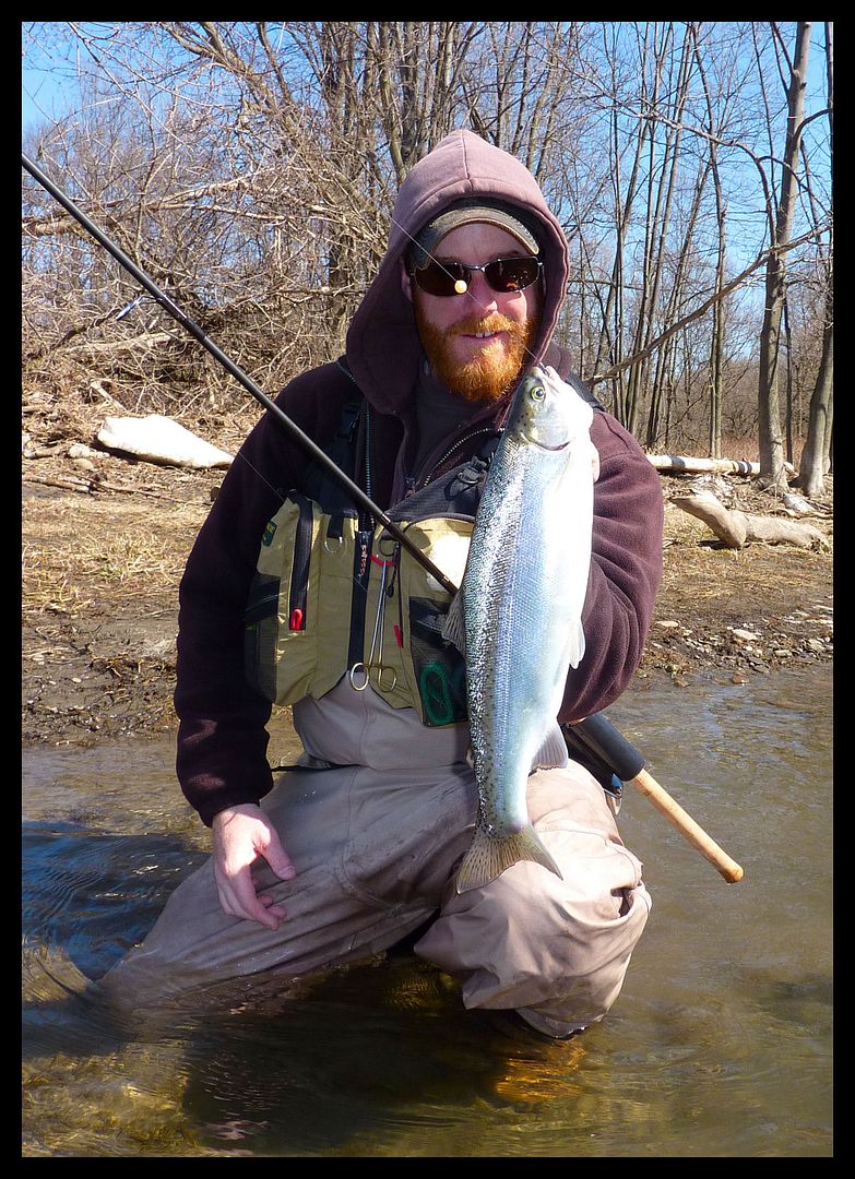 Lukeberry and I had ideas, but being the weekend of the resurrection of Jesus Christ so did a whole lotta other folks. Seems nobody goes to Church anymore and like us, Religion is where you find it with the nature and fishes… and maybe some too think ole J.C. would rather be found fishing for a meal after all these years asleep? So gettin’ on, somewhere amongst the locust anglers our prayers were answered after taking exodus, and here I found peace and glory with my first steelhead of the year.