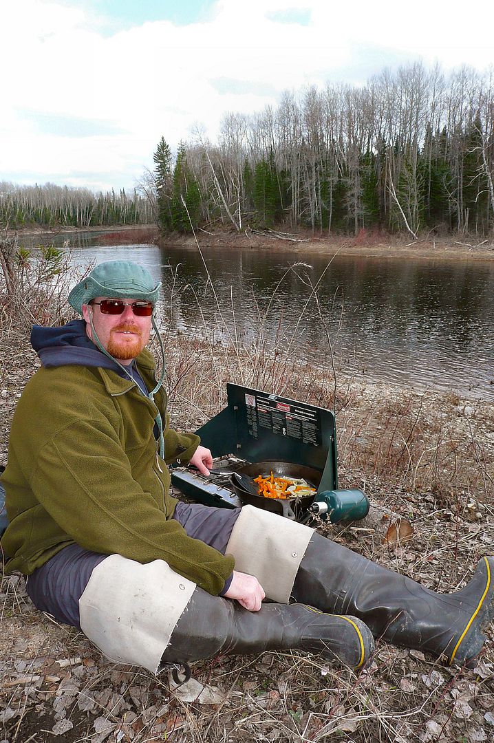 Being around 1:00pm I broke out the Coleman and heated up some chili. While doing so I managed to release one more smallish pike but then after some lure changes couldn’t entice anymore. Happy to catch no incidental walleyes thinking that they’re up that creek getting their freak-on making success of a well timed spring orgy.