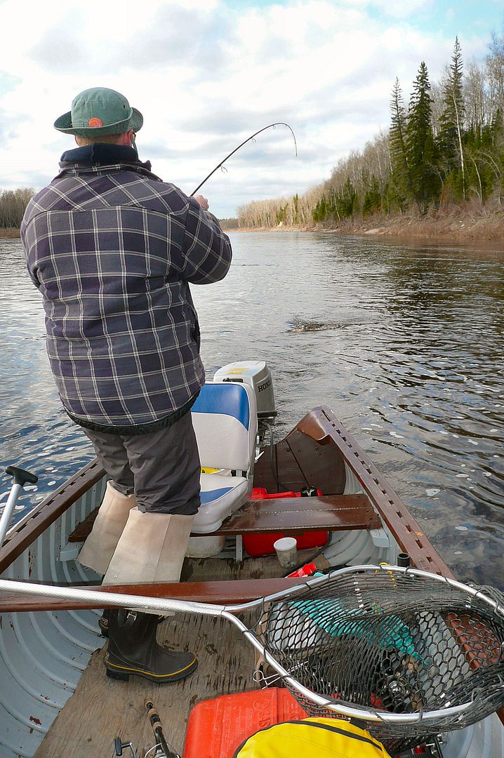The James Bay break-up was a high one and it left the rivers flowing to flood levels. Not expecting much for fishing because everywhere was a blown out muddy mess, still very eager I roused at 5:00am.