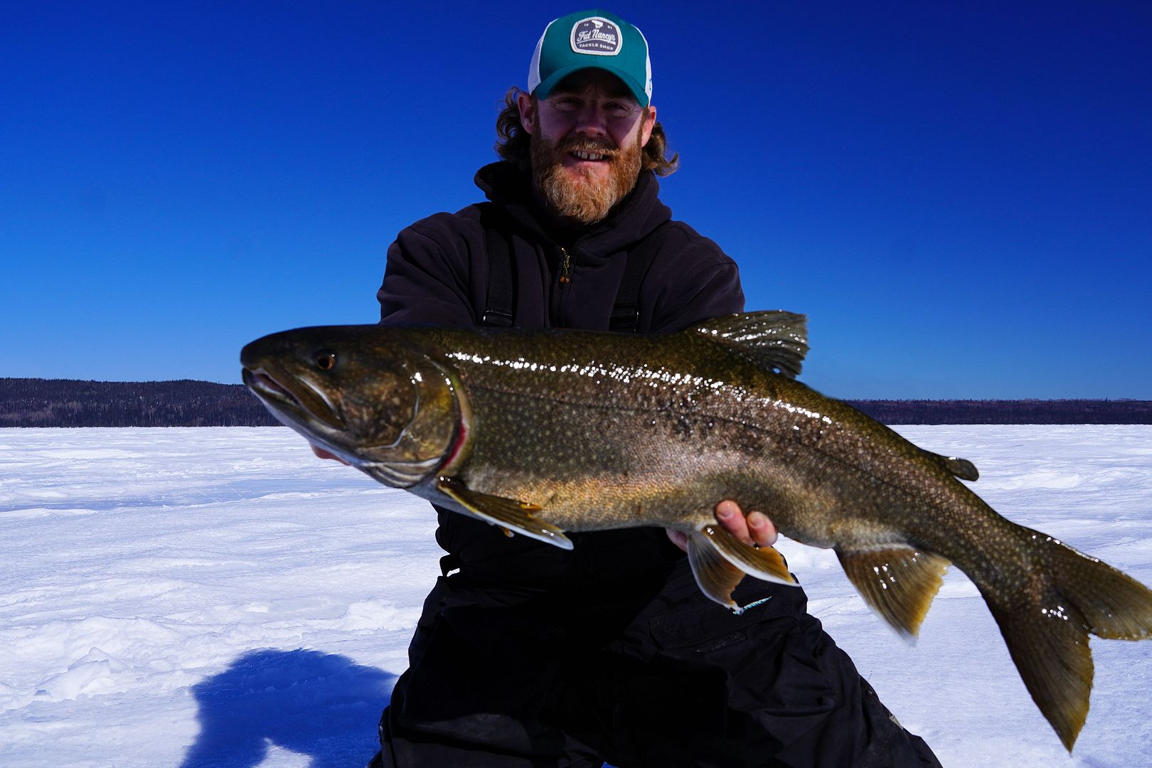 The eighth March trip I’ve certainly learned some tricks and some spots. The first four years I’d work to find and jig a few fish for hours and hours, days and days, and that era eventually smoked itself out. Stevie in more recent years has helped relight a fire, working hard with me to relocate, search and begin catching fish again. We’ve had some tougher seasons and some great ones too but one thing is for certain, we’re on ‘em! There is nothing better to target through the ice than big, aggressive lakers.
