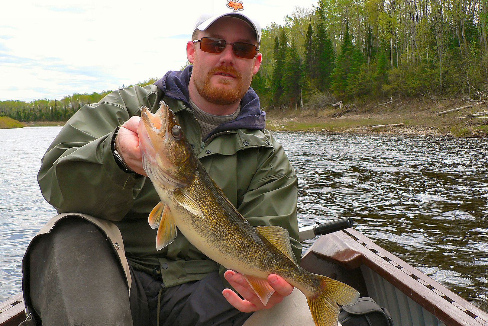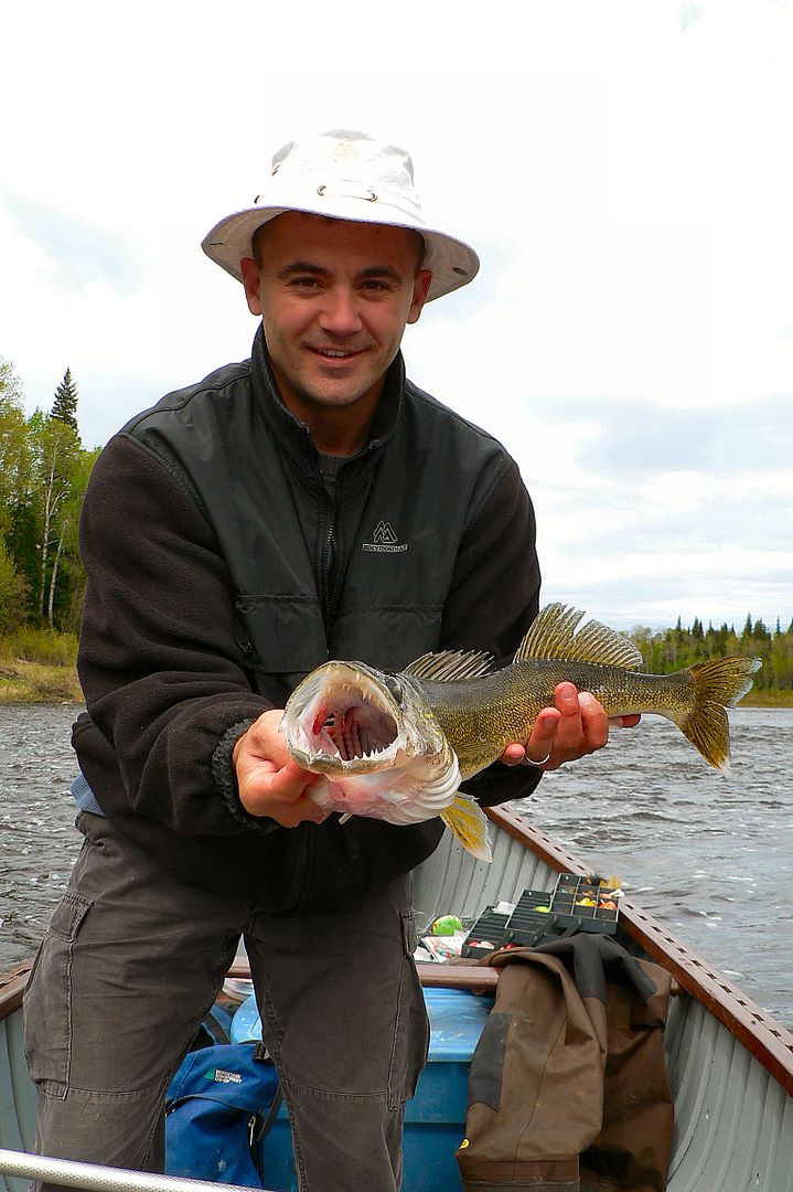 Sooo, Rob and I put the motor in shallow drive and navigate the skinny water and rock gardens to head four more kilometers up to another spot I know. Once there, we’re right into them again. Not as many eyes but lots of snot rockets. Spinners and minnows under a float work great up there too. Rob gets himself a pike he believes he’ll keep for the table.