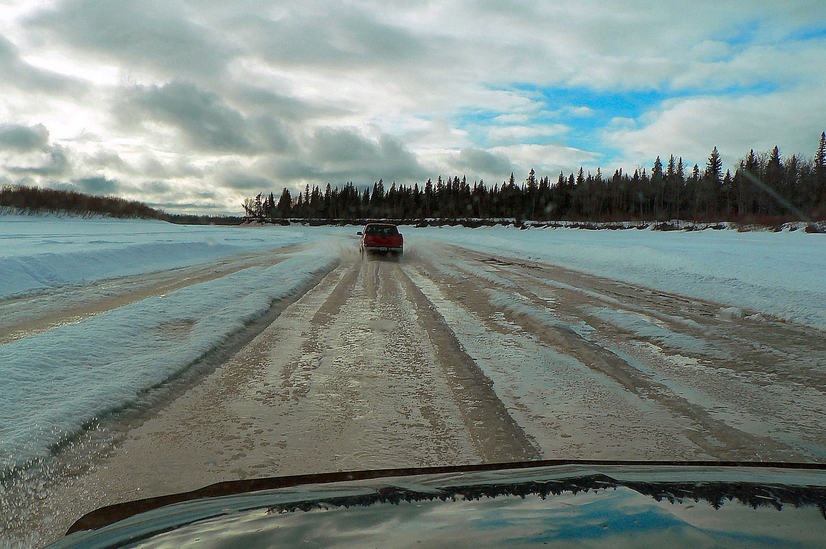 Friday evening the boys came in along with the rain and warm temps. I gave them their first taste of the ice road across the Moose River.