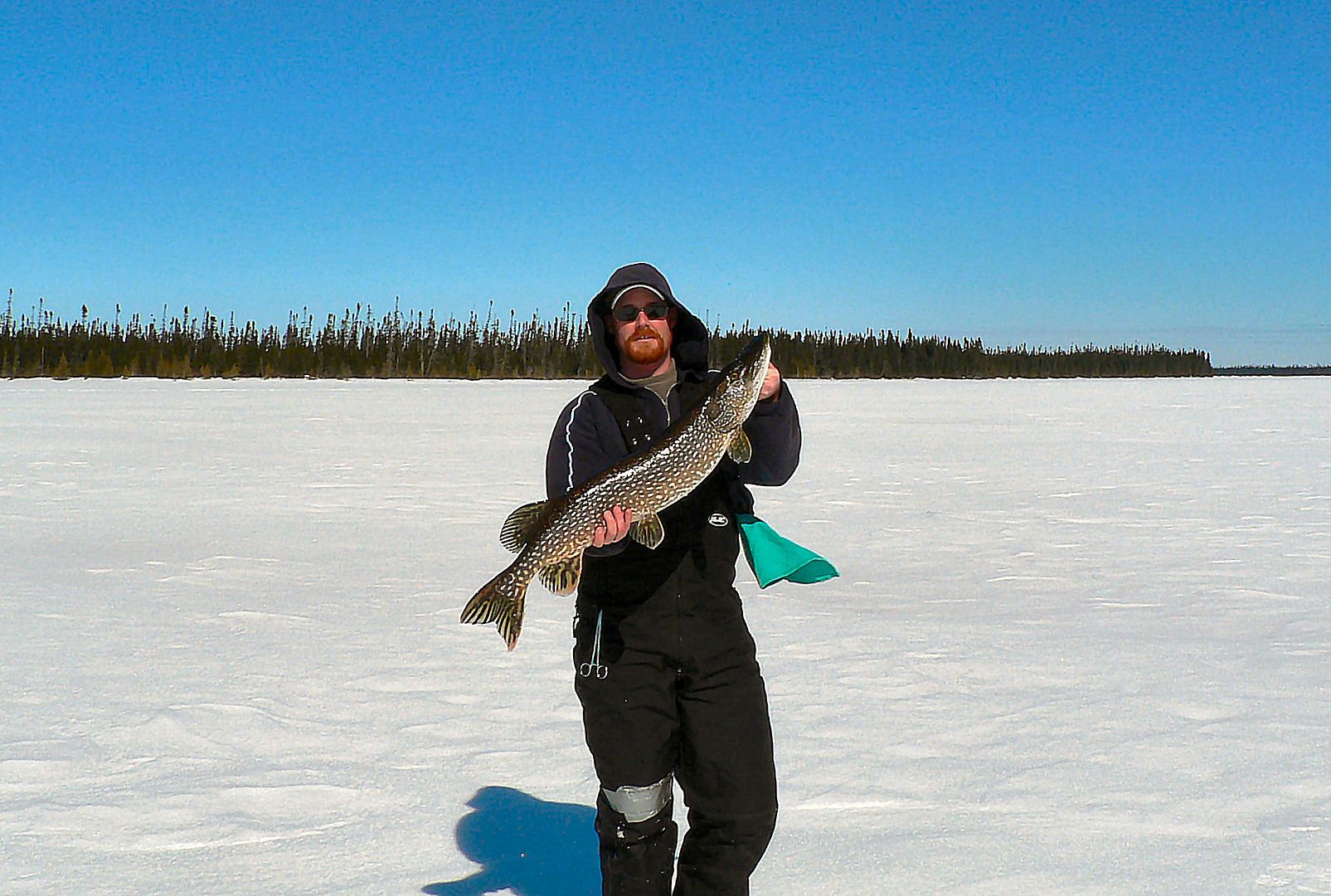 At the hole it’s zzzzt zzzt time. Long story short, heavy fish, good tussle, and it’s soon on the ice.