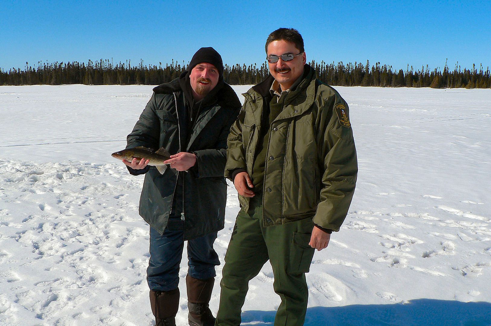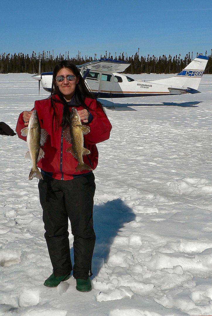 I’ll keep the history short. During March of 2005 Brenda and I fished a half day on Kesagami Lake catching about 20 walleye. Two days after that first time there, I returned with my friend John and his father. Over another four hours or so, we hooked into another 50 walleye give or take and my first ever pike at 40 inches. Now fast forwarding to the present, this is Kesagami ice fishing 2006.