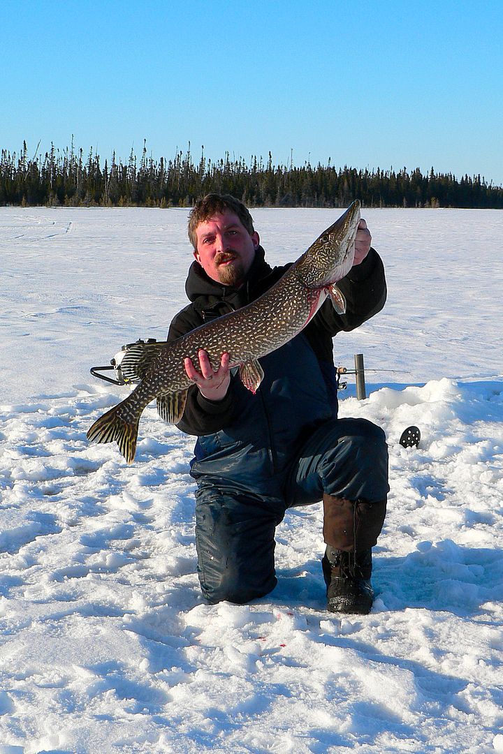 Kev’s very own 37″ Northern Pike weighing in at 12 1/4 lbs. Wicked BRO!