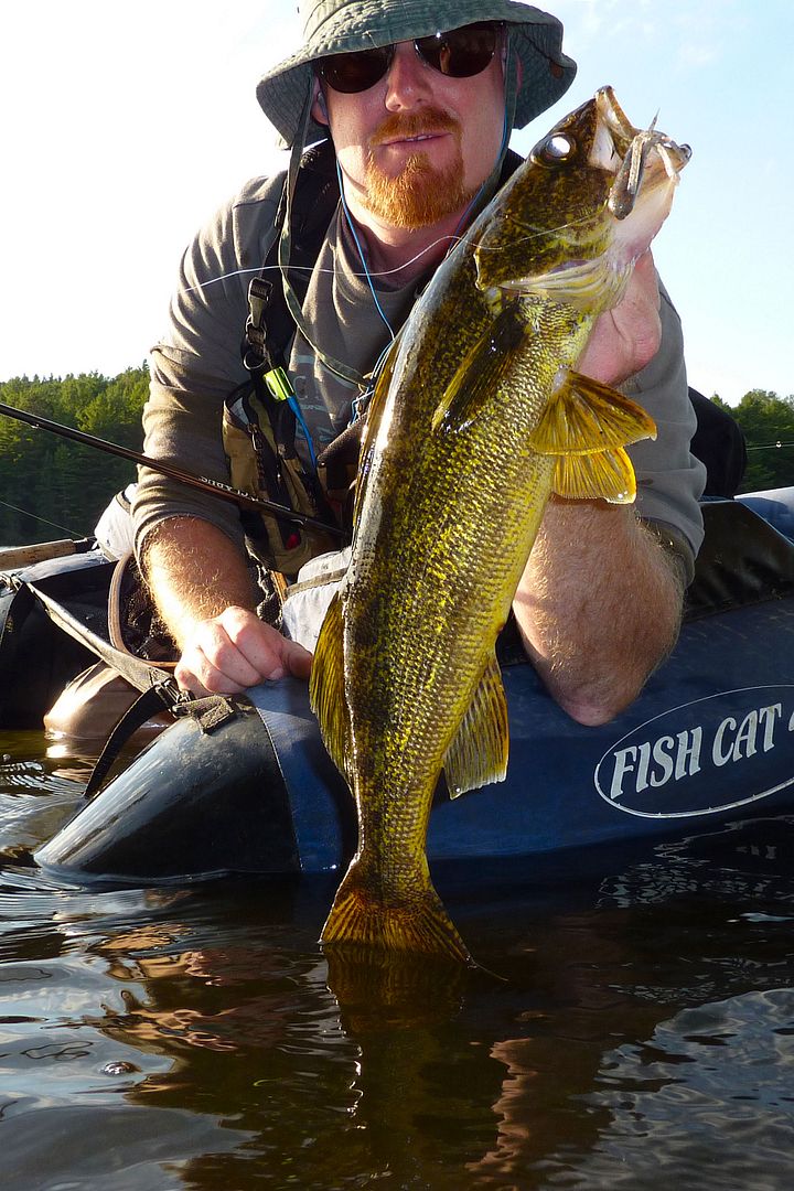 Throughout the early fall at home, when the odd walleye itch did need some scratching, I tore myself away from the smallies for a few outings on the local ponds. One afternoon in particular, lake to myself, the bite was so on that twenty feisty fighters came over the gunnels. And another day, while bass fishing from the float tube, a said to be “extinct-from-the-lake walleye” surprisingly tapped on the line.