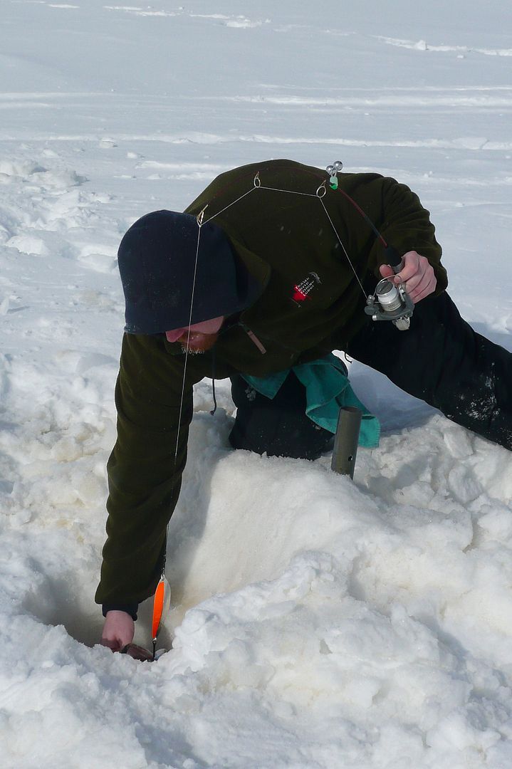 Didn’t think we’d get attacked from the east today as the water below the ice there was almost too skinny at around nine inches deep. Before Bren got to the rod it had reset into position looking like the sniper had vanished.