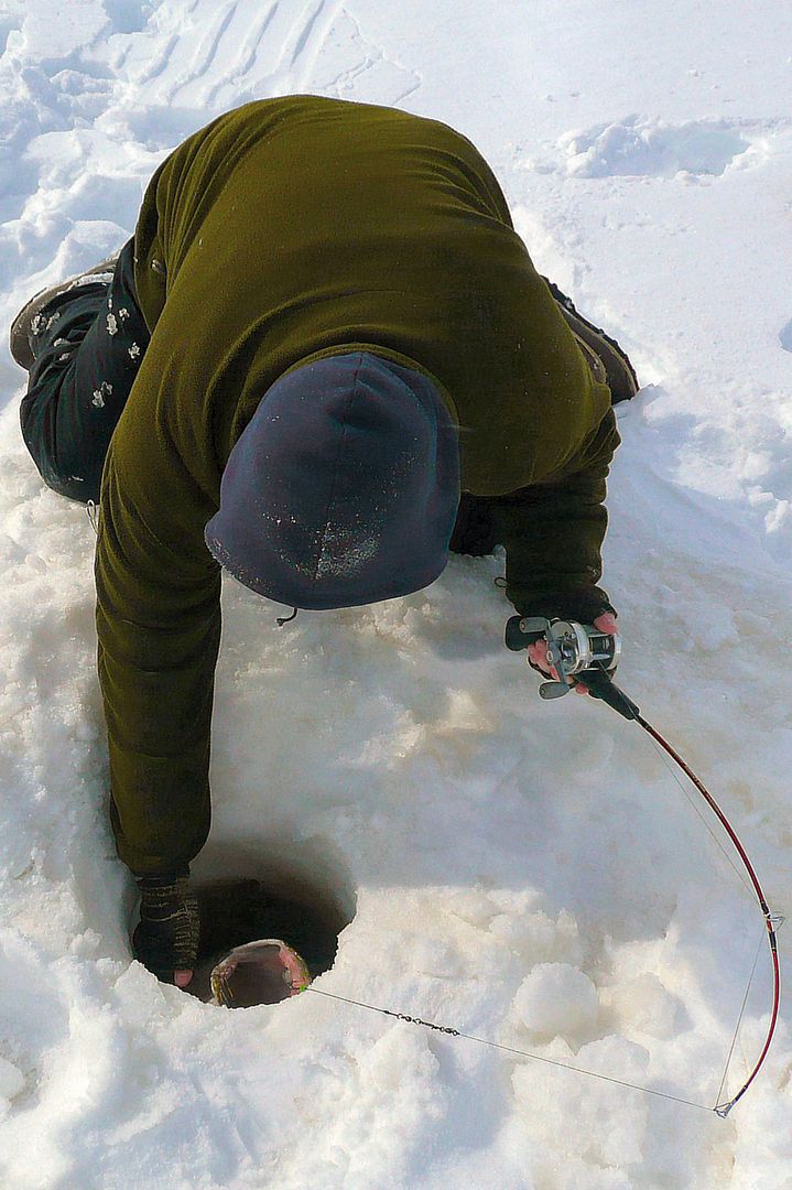 Think if I was a perch swimming around under the ice in the dark on this lake, I’d be the most scared creature on earth. So we put the poor fishes fears to rest.