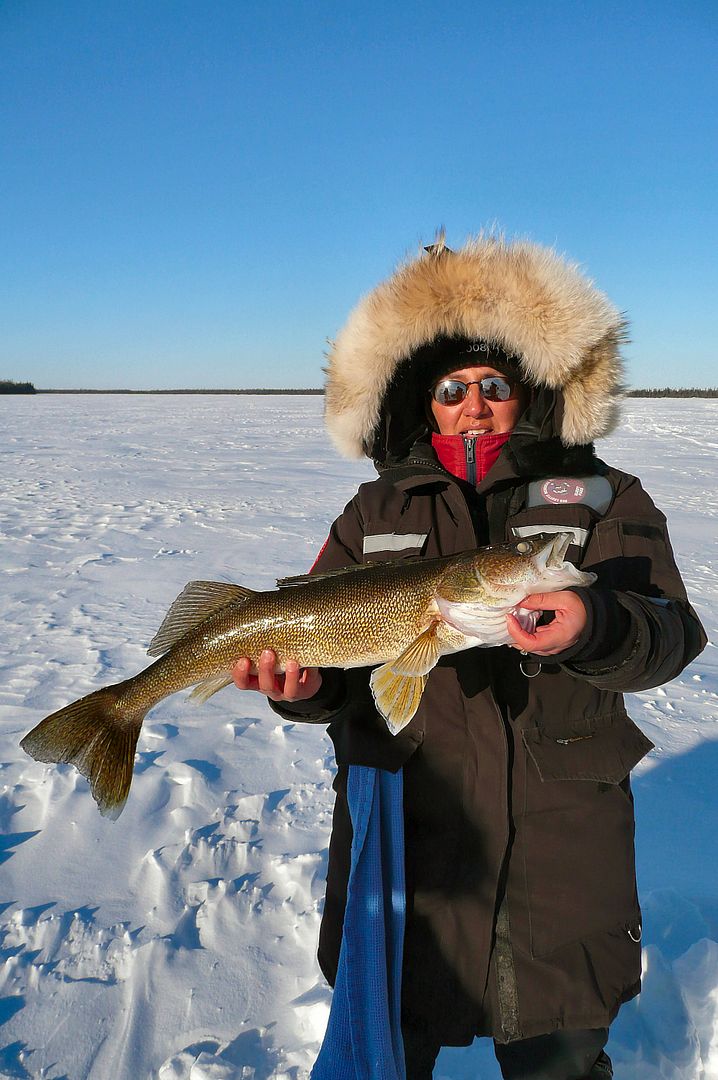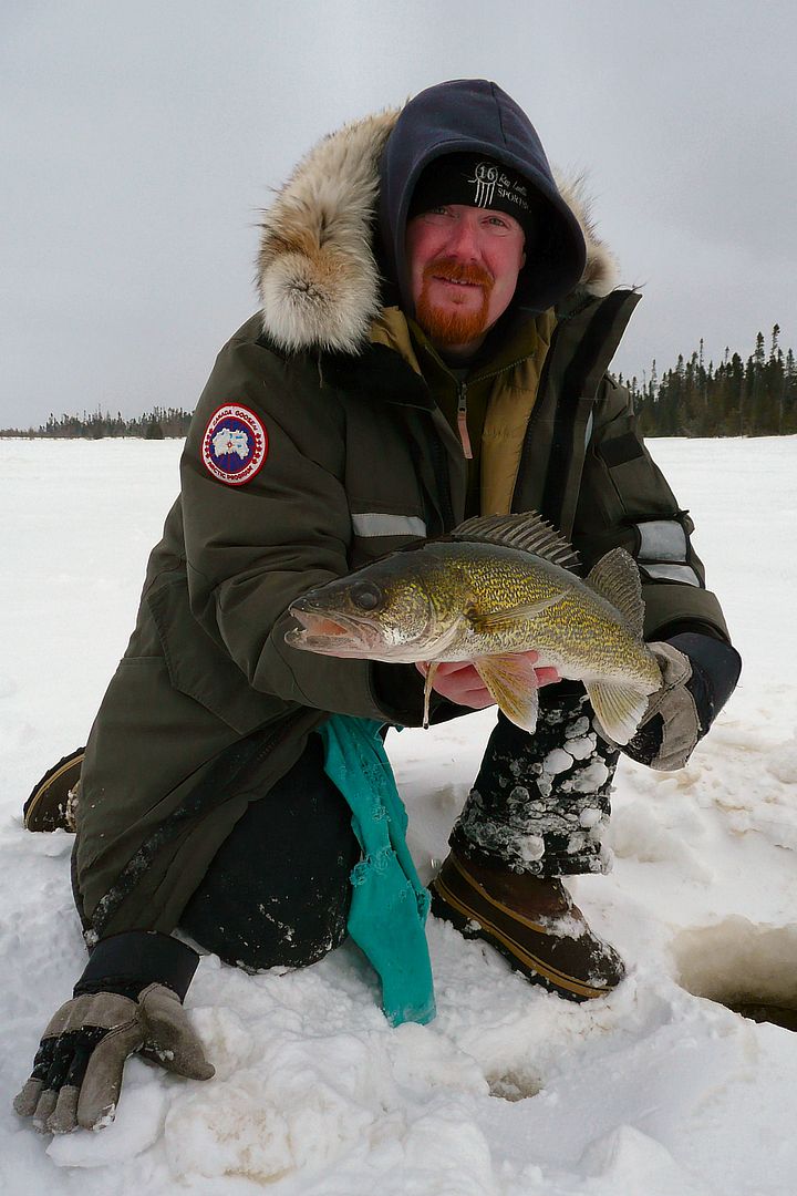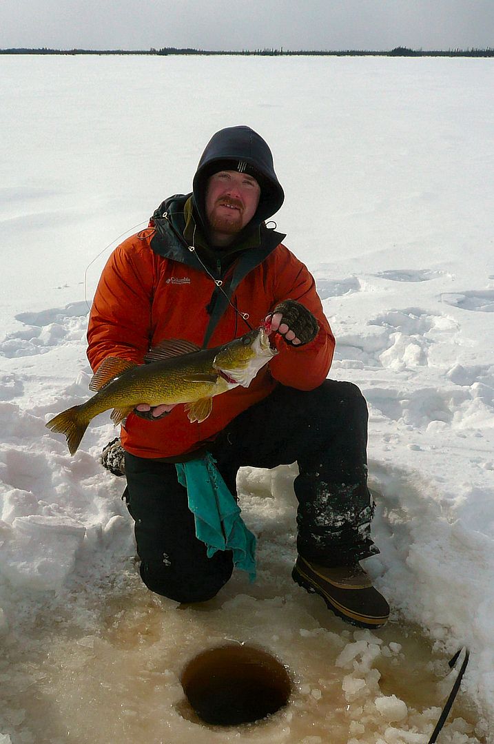 I got back to our walleye area, put a lure and minnow on, dropped and before it hit the bottom of like 18 inches of water I had a peyekeral. Some sick shit peeps. Ha!