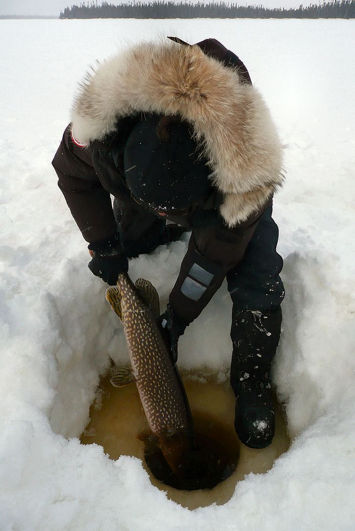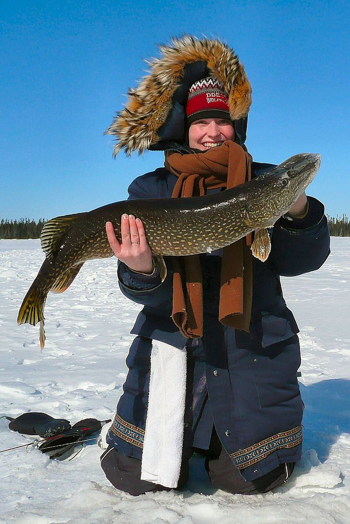 She picks it up, sets the hook and makes about three sudden turns on the reel. Vadar pike had been lurking below but Bren surprised him with just one swing of her light sabre, pulling his head instantly into the hole-vortex-jedi-trap rendering Vadar totally defeated. It was freaking rad! Never seen it happen before. Bren destroyed Vadar pike in like two seconds with just one perfect move.