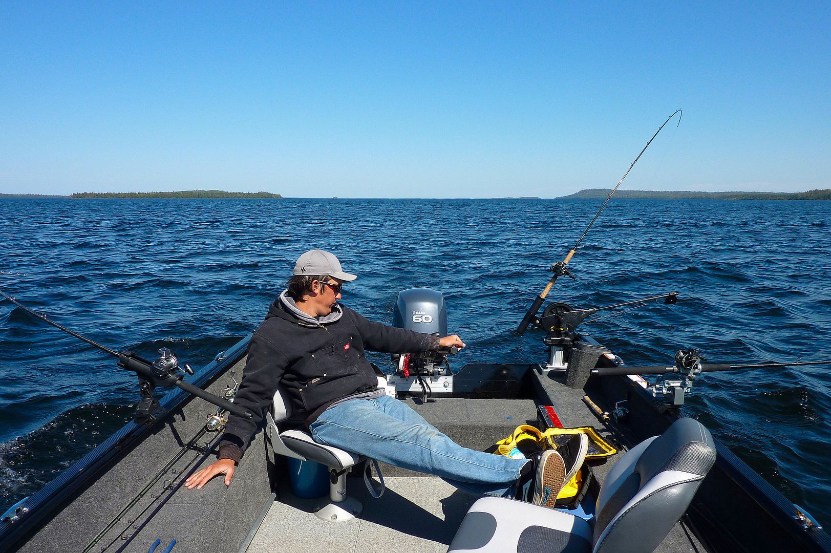 Not all bodies of water are created equal. Mystery lakes with limited to no hydrographic data for our modern day navigation can pose greater safety concerns. While up in northwestern Ontario on some big, remote and uncharted waters there have been days when the quick response of the tiller has potentially saved my life. Three different occasions, unmarked shoals that have come quickly to the surface from out of depths 20 to even 90 feet, have been narrowly avoided while traveling on plane. The tillers instant stop-ability, while trimming up and turning sharply to avoid sudden hazards is unequaled. Control to throttle in wrist, turn with the arm and trim at the thumb are all and always already found in hand. I remember one such shoal did rise out of thirty feet, and I came off plane at 30mph to just nose into a rocky shallow at a drift speed. The skeg momentarily tick-tick-ticked bottom while moving forward but on a trim upwards. Just high enough for it and the prop to clear, reverse came hard and fast in skinny water to protect the hull from damaging rocks only feet from the bow. That was the closest call I have ever had. At full speed hitting that shoal would have proven deadly, and being that I was twenty miles offshore, alone and isolated, survival beyond accident surely could have been difficult. In all honesty, this time and a few other close calls have all been nothing but a scare, with never even a loosened rivet, because all control for quick avoidance was there in hand, the reflexes in sync with the tiller.