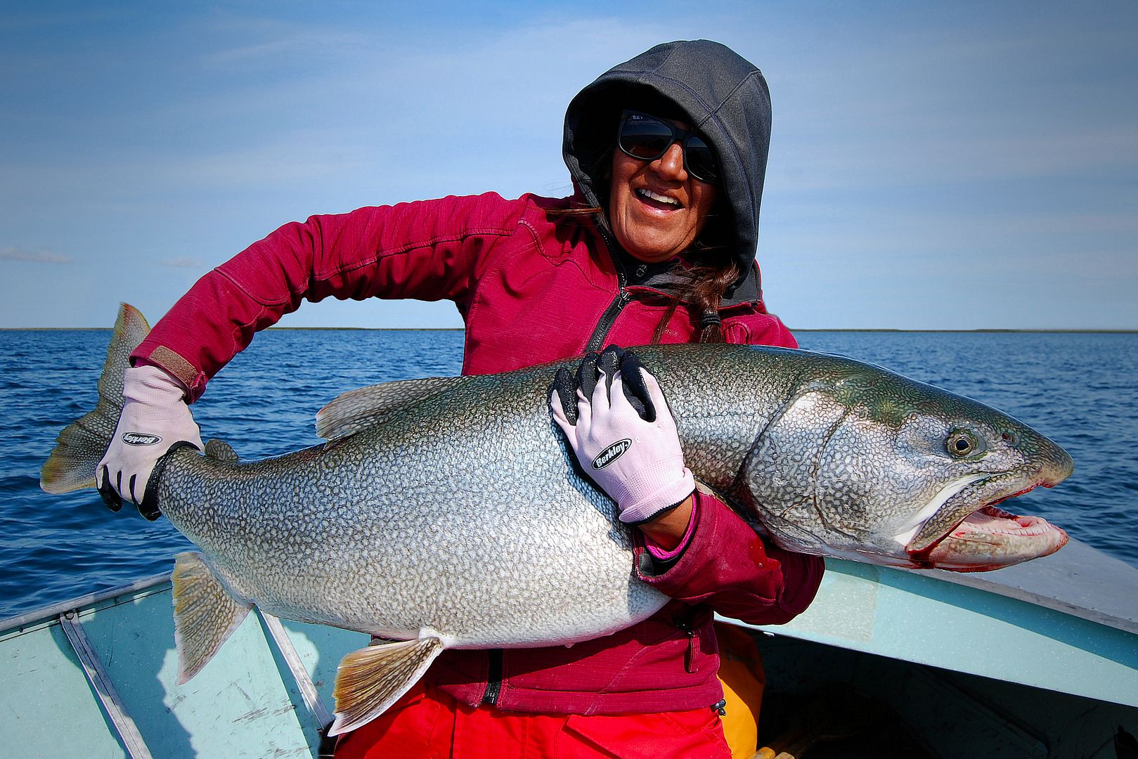 Why could Patty stay out on the Niagara Bar while others were turning around and heading back to safe waters? Because of confidence and control. He said it then, and over the years I have learned the same. When out that day he and his friends were vertically jigging for lake trout while getting blown around, bobbing in big surf and one fella was barfing his guts out overboard. I remember Patty actually caught the most fish that time too, all the while steering the boat and keeping them safely afloat. An experienced hand on the tiller, the motor quite innately becomes an extension of your arm, maybe just connecting right on through the nerves up to your cranium..? OK, maybe not that far, but as with experience comes the conditioning for angler and boat to act as one, instantaneously if need be, and in big waters having this quick ability to navigate troublesome waves is a benefit. So much so, that Patty could continue to actually fish with his other hand all day, jigging lake trout with his friends and keeping lure presentations vertical in wild waves. Try working a steering wheel, the throttle and jigging lakers all day in a 16 foot boat while riding in 6 to 8 footers. The tiller won that day because everyone else in a consoled boat forfeited. Over the years keeping vertical over lakers in choppy waters, there have been many a days the trolling motor just doesn’t have the juice or even quick response to play fish right and fast enough for a perfect lure drop. With a tiller, no problem! A summer spent guiding on the best jig bite lake trout fishery on the planet, Great Slave Lake, tiller control for vertical presentations was paramount to angler success.